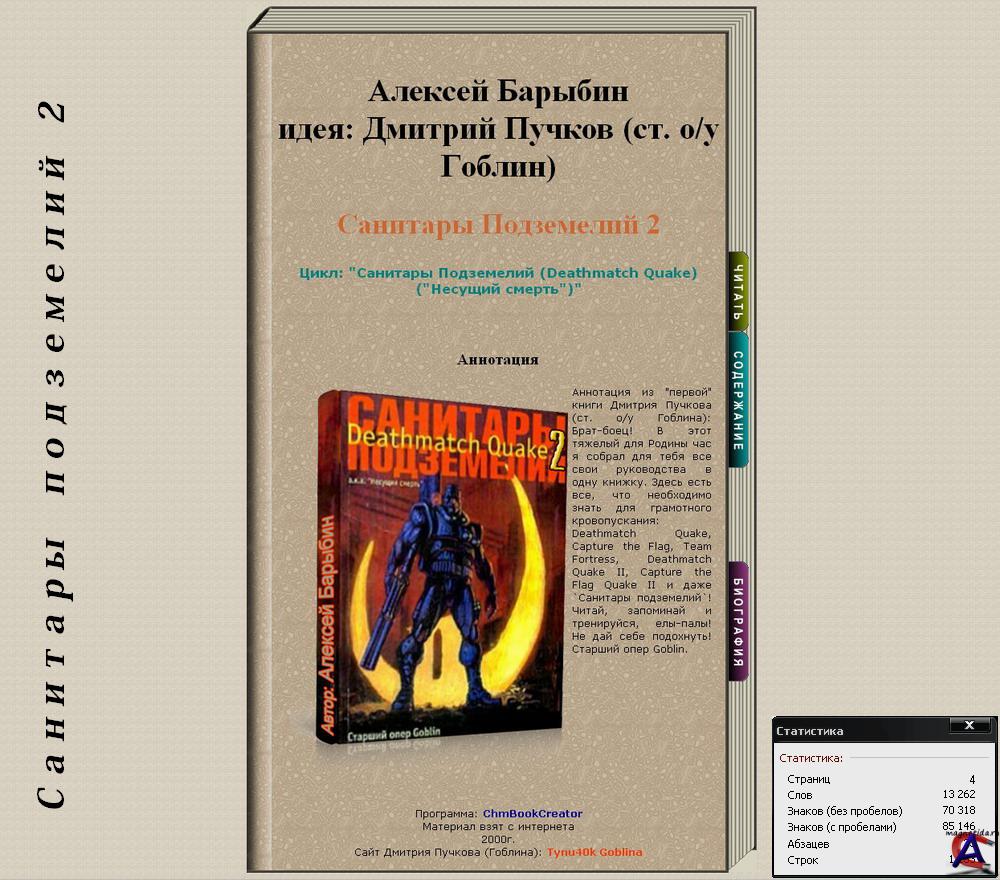 Санитары подземелий / Deathmatch Quake ("Несущий смерть") Автор: Дмитрий «ст. оу Goblin» Пучков Формат: .fb2 Размер: 145 Kb Язык: Русский Жанр: фантастика