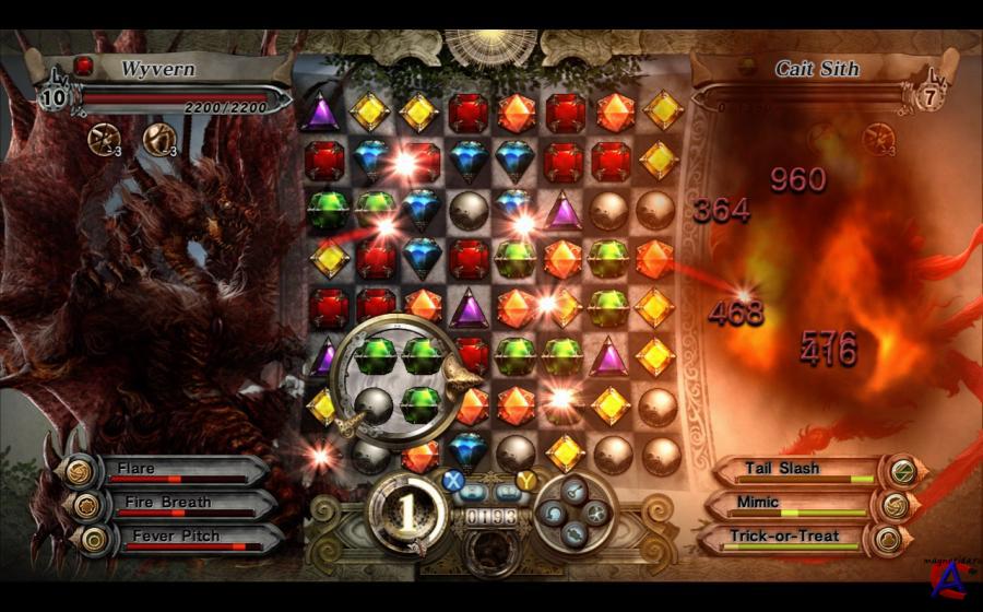 Год выпуска: 19 ноября 2009 г Разработчик: PopCap Games Издатель: Square Enix Платформа: PC Тип издания: FULL Язык: Английский Таблетка: Вшита Описание игры: Компания PopCap Games (разработчик таких головоломок и аркад как Peggle и Plants vs. Zombie) совместно с компанией Square Enix (создателем серии Final Fantasy) представляют новую взрывоопасную смесь логической головоломки и РПГ под названием Gyromancer. Наконец у игры Puzzle Quest появился достойный конкурент. Игровой процесс позаимствован из серии Bejeweled и представляет собой смесь ролевой игры, стратегии и головоломки. В центре внимания сюжета окажется волшебник по имени Rivel, которому в прямом смысле отшибло память. С целью раздобыть потерянные воспоминания, маг отправится в заколдованный лес, кишащий недружелюбными тварями. Путешествуя по карте, герой будет встречать на своем пути множество врагов. Боевая составляющая выполнена в виде логической игры. Особенности игры: - Пройдите 10 уровней в поисках потерянных воспоминаний. - Новая боевая система, основанная на Bejeweled Twist. - Путешествуйте по карте и собирайте новые артефакты, золото и ищите новых союзников в виде 50 разнообразных монстров. - Увеличивайте свой уровень в бою и приобретайте более сильных монстров. - Феерические спецэффекты и комбо. - Частично позаимствованная из Final Fantasy система передвижения по карте... Минимальные системные требования: -OS: Windows XP/Vista -CPU: 2.4 GHz -VIDEO: 3D-видеоадаптер с памятью 256 МБ, совместимый с DirectX 9.0c -RAM: 512 MB -SOUND: Звуковая карта, совместимая с DirectX 9.0c -HDD: 160 Мб