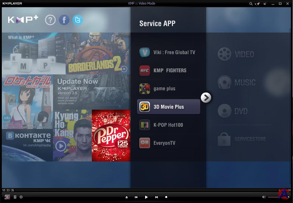 Версия программы: 3.6.0.85 Версия программы: 2.9.4.1435 Portable Язык интерфейса: ML-RU ОС: Windows® 2000/XP/Vista/7 Лекарство: не требуется KMPlayer - это универсальный проигрыватель, который способен проиграть практически любые форматы медиафайлов, например такие как формат VCD, DVD, AVI, MKV, Ogg Theora, OGM, 3GP, MPEG-1/2/4, WMV, RealMedia, QuickTime и другие. Также программа понимает титры на DVD дисках и способна записывать звук, видео или картинки из любой части проигрываемого фрагмента. Плеер может работать с внутренними и внешними фильтрами и плагинами, что позволит управлять аудио-видео параметрами проигрываемых файлов. KMPlayer включает в себя почти все основные кодеки для воспроизведения информации. Корейский мультимедийный проигрыватель, который поддерживает широкий диапазон форматов за счет внутренних кодеков. KMPlayer обладает полными возможностями для просмотра DVD. Особенно он ценен при просмотре HDTV файлов, равных ему нет.