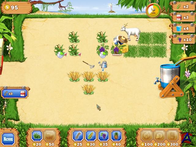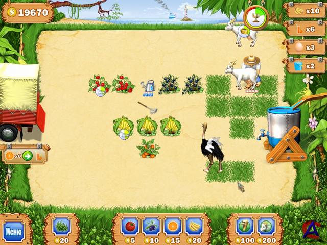 Увлекательная бизнес-аркада с красочной графикой. Тропический архипелаг Гринфилд попал под удар стихии. Ураган уничтожил все посевы пшеницы и кукурузы, теперь аборигенам грозит голод. Спасите островитян!Помимо огородничества и садоводства вы займетесь разведением домашнего скота и птицы, будете производить муку, апельсиновый сок и газировку, строить новые дома, школы, фабрики, супермаркеты и зоомагазины. Тот, кто быстрее справится с поставленным заданием, получит серебряные и золотые кубки, дополнительные средства для развития хозяйства. Также в награду вы получите очки опыта, которые можно обменять на новые умения и навыки.Эта увлекательная игра понравится всем поклонникам Веселой фермы3 и других симуляторов деревенского хозяйства. Пройдите все уровни и отстройте тропический рай заново! P.S: Игра активируется при помощи АнтиАлавар, при нажатии кнопки "activate" в программе. Инструкции в архиве. Ключ больше не понадобится.