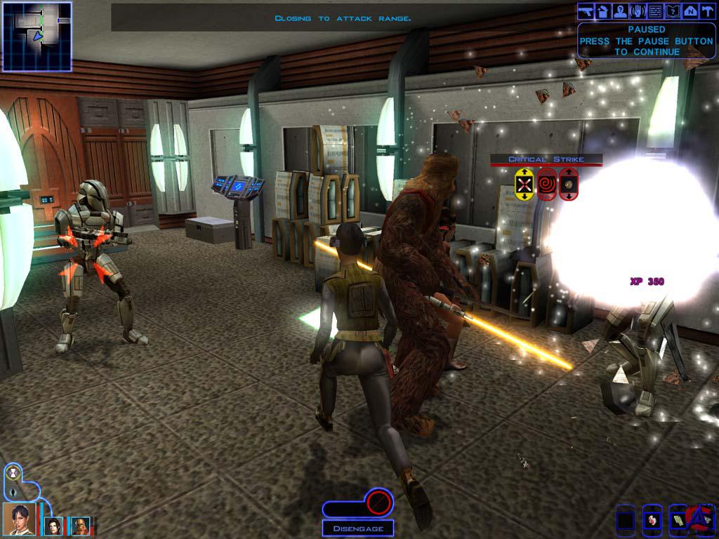 Star Wars: Knights of the Old Republic (2003) Информация об игре: Название: Star Wars: Knights of the Old Republic PC Версия игры: Русская Жанр: RPG Разработчик: BioWare Издатель: LucasArts Дата выхода: 19 ноябрь 2003 Сайты игры: www.lucasarts.com/products/swkotor Минимум: CPU 1 GHz, 128 Mb, 32 Mb Video Рекомендуем: CPU 1.6 GHz, 512 Mb, 64 Mb Video Описание: Игра представляет собой стильную смесь экшена от третьего лица и RPG и повествует о событиях, происходивших в Республике за 4000 лет до тех, что известны нам по Первому Эпизоду. В то время как Республика отмокает после войны с тёмными Лордами, на неё надвигается новая опасность – Sith. По традиции жанра, на пути у зла остаётесь только вы и ещё пара таких же секретных засланцев – ваша партия.