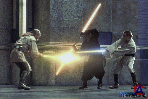 Качество: DVDRip Видео кодек: 640x272 (2.35:1), 23.976 fps, DivX ;-) MPEG-4 Low-Motion ~1249 kbps avg, 0.30 bit/pixel Аудио кодек: 48 kHz, MPEG Layer 3, 2 ch, ~115.83 kbps avg Продолжительность: 2:16:12 Перевод: Русский, Перевод гоблина от студии "Божья искра" Формат: AVI Информация о фильме: Двое кришнаитских оперуполномоченных кшатриев (джедаев) — Погон (Лиам Нисон) и Павиан (Эван Макгрегор) из Найроби — отправлены в качестве ревизоров на поиски секретных заводов по производству палёной водки. Они летят на электростанцию «Малиновый джихад»[1], парящую в околомарабушном пространстве, и пытаются связаться с главными подозреваемыми в контроле за этими заводами — «резиновыми мордами», говорящими с кавказским акцентом. Резиновые морды, подстрекаемые Дарт Осамой бен Ладеном, собираются свергнуть королеву Задолбалу и для начала решают убить назойливых оперуполномоченных Кришны. Однако ни нервно-паралитический газ «Черёмуха», ни рота дроидов не наносят джедаям никакого вреда, и они начинают ломать мебель на станции. Когда опера почти прорываются, против двух бойцов отправлены железные колобки, и здесь им не может помочь даже шестой разряд по сварке Погона. Когда на связь с резиновыми мордами выходит сама королева планеты Марабу Задолбала, они «мамой клянутся», что не встречали никаких послов, после чего переключают все каналы связи планеты на трансляцию «Лебединого озера», прямо во время трансляции футбола, причём на самом интересном месте. Мальчиш Кибальчиш сразу же утверждает об измене, однако поручик ему не верит и отправляется за собственным модемом. В стране происходит революция. Тем временем кришнаиты выпрыгивают в мусоропровод и попадают на планету Марабу. Здесь Погон вместе с местной живностью спасается от больших бронетранспортёров с тупоголовыми дроидами и случайно падает на чукотского рэппера Джагу-Джагу Бздынкса («по-вашему Страшилу Мудрого»). Чукотскому рэпперу нравится мастерство Погона во владении джедайской шашкой и он решает помочь оперуполномоченным. Джага-Джага проводит их до подводного оленеводческого совхоза «Глубоководный олень», даже несмотря на то, что там не любят рэпперов и хип-хоп вообще. Перед погружением Джага-Джага рассказывает, что совхоз глубоководный потому, что председатель любит дайвинг, а чукотские олени — не глубоководные потому, что они утонули. Представ перед растолстевшим председателем совхоза, Погон и Павиан сообщают чукчам о вторгшейся на Марабу армии злых роботов, которая включает также роботы класса «Буратино», способные к глубоководному погружению, и просят о помощи в подавлении мятежа. Председатель, не любящий наземных жителей за то, что те называют его «скользкой болотной жабой», а также разочарованный тем, что «наши бледнолицые братья» не хотят взять несколько уроков подводного плавания, отправляет их вон, однако соглашается дать им в пользование жёлтую дизельную «Бонгу» в обмен на выплату символической цены или под залог (партбилет, например). Прихватив с собой Страшилу Мудрого, за избавление от которого председатель отдаёт «Бонгу» бесплатно, Погон и Павиан под музыку Beatles спасаются от Годзиллы и всплывают на поверхность. Тем временем резиновые морды (они же буржуины) с помощью армий дроидов атакуют дворец королевы Задолбалы и раскрывают свои коварные планы по «экспроприации экспроприаторов»: «Землю — рабочим, фабрики — кресть