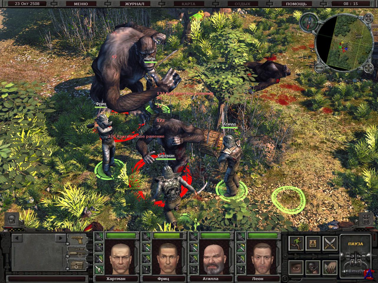 Описание игры: "Санитары подземелий 2" - жесткая и бескомпромиссная игра, продолжающая и развивающая традиции первой части под непосредственным руководством ст. о/у Goblina. В главной роли "Санитаров подземелий 2" выступает сержант Хартман. Из личного дела сержанта Хартмана: Возраст: 38 лет. Рост: 190 см. Вес: 100 кг. Особые приметы: на правой щеке шрам от ножа. Дипломированный специалист по рукопашному бою и применению холодного и имперского оружия. Отличник боевой и политической подготовки. Разведывательно-диверсионная группа "Упырь" при высадке на планету "Матросская Тишина" состояла из четырёх курсантов под его командованием. Сержант Хартман сразу же исчез в неизвестном направлении. Кабан, главный герой первой части «Санитаров подземелий», не смог обнаружить ни малейших намёков на его местонахождение. В итоге РДГ "Упырь" была эвакуирована с планеты в составе четырёх человек, Хартман же числился пропавшим без вести. В действительности же Хартман, будучи наиболее опытным и сильным бойцом группы, после высадки сумел избежать пленения и убежал от преследователей. Он некоторое время прятался в лесу, питаясь подножным кормом, затем предпринял попытку вернуться к посадочной капсуле. Выяснилось, что в капсуле давным-давно никого нет, а саму капсулу распиливают на запчасти примитивными инструментами странные люди в форме, похожей на полицейскую. Несмотря на все навыки Хартмана, люди заметили его и решили взять в плен. Снова завязалась погоня, и на сей раз Хартмана выгнали из леса на открытую местность, в степь – чтобы у него было меньше шансов спрятаться. На границе леса и степи на пути Хартмана попалось нескольких неприметных серых кочек. Хартман промчался бы мимо, не обратив на них никакого внимания, однако когда он приблизился на несколько шагов, из кочек взметнулись головы на тонких шеях, но с огромными клювами, и дружно плюнули в сержанта какой-то инопланетной гадостью. Лицо и руки в местах, на которые попала жидкость, сразу онемели. За несколько минут чувствительности лишилась почти половина туловища, а затем и нижние конечности. Ещё через некоторое время Хартман потерял сознание и был схвачен. Преимущества игры: • Две игры в одной. Основной игровой режим игры разработан ст. о/у Goblinом. В процессе игры сержант Хартман не получает уровней и дополнительных очков жизни. Он опытный диверсант, а потому с самого начала его характеристики навыки развиты по максимуму. Однако герой может совершенствовать владение оружием, которое было произведено на планете "Матросская Тишина", а также улучшать навык "ловкости рук" и повышать авторитет. Также в игре сохранился классический режим, когда игрок может прокачивать персонажа с нуля. Фактически игрокам предлагается два разных варианта прохождения. • Новое оружие. Молниемет, электродубинка и огнемет - зверские средства уничтожения всего живого - были разработаны в недрах Промзоны, хорошо известной по первой части игры. • Новые спецэффекты. По сравнению с первой частью игра "Санитары подземелий 2: Охота за черным квадратом" заметно похорошела: положительные изменения произошли как на технологическом, так и на геймплейном уровне. • Новые возможности заработка. В "Санитарах подземелий 2" реализована возможность сопровождать или же грабить торговые караваны. Что лучше: путь разбойника с большой дороги