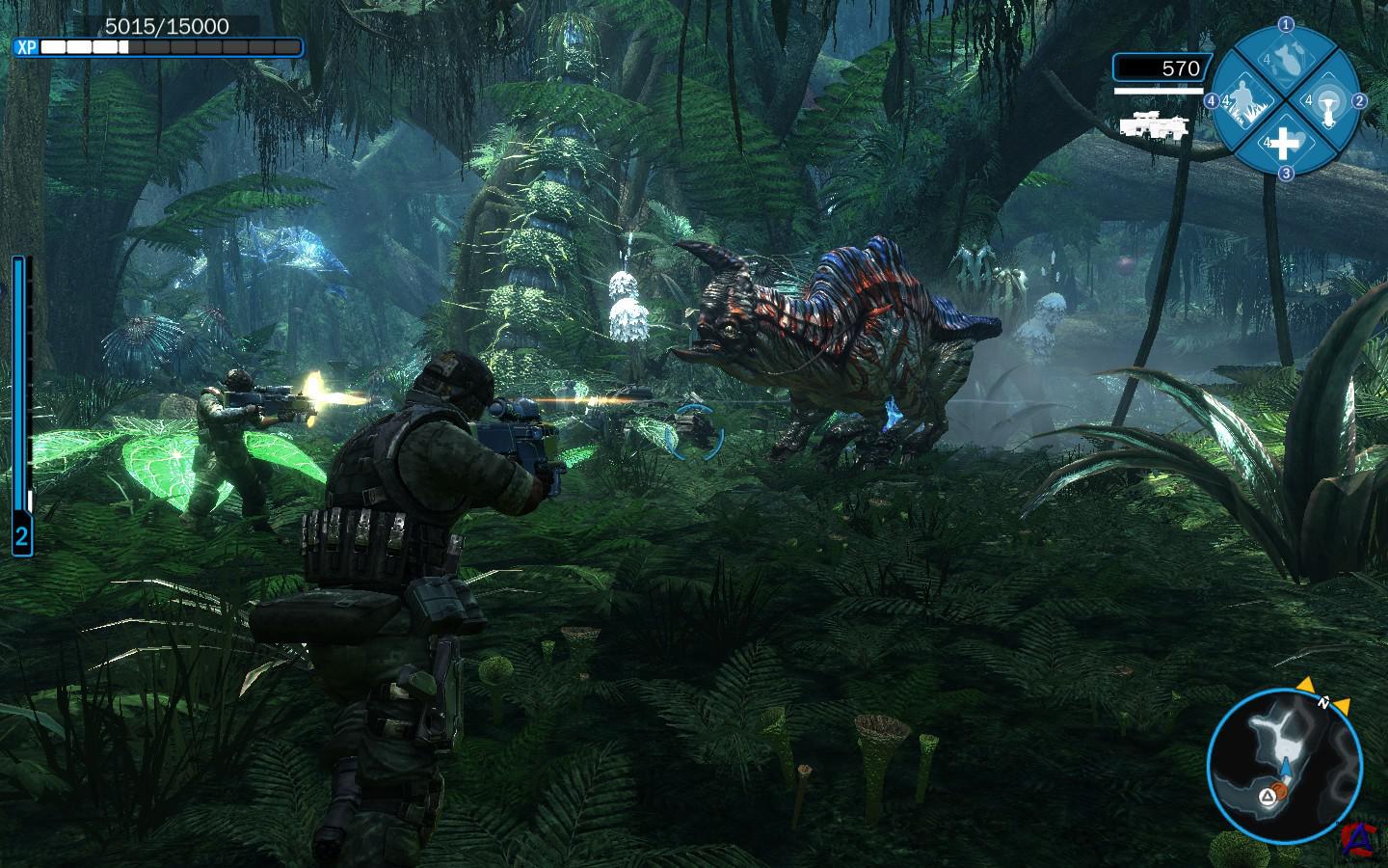 Системные требования: Минимальные Операционная система: Windows® XP (with SP2) or Windows Vista® (with SP1); Процессор: 3 Ghz Intel® Pentium® D 830, AMD Athlon™ 64 X2 3800+ or better; Оперативная память: 1 GB Windows XP / 2 GB Windows Vista, Windows 7; Видеокарта: NVidia™ 6800 or ATI™ X1650 or better 256 MB DirectX® 9.0c–compliant card with Shader Model 3.0 or higher ; Свободного места на жеском диске: 4 GB; Рекомендуемые Операционная система: Windows® XP (with SP2), Windows Vista® (with SP1) or Windows® 7; Процессор: Intel® Core® 2 Duo Family, AMD Athlon™ 64 X2 5200+, AMD Phenom™ or better; Оперативная память: 2 GB; Видеокарта: NVidia™ 8600 GTS or better, ATI™ X1900 or better 512 MB of graphic memory; Свободного места на жеском диске: 4 GB Описание: В далёком будущем земляне исчерпали ресурсы родной планеты и теперь стремятся овладеть дарами не Земли, но Пандоры. Миролюбивые На’ви, аборигены Пандоры, живут, не зная технологий, в гармонии в прекрасным миром дикой природы. Что случится с хрупким миром синекожих великанов На’ви с длинными хвостами и огромными зелёными глазами, когда техногенная армада Земли зависнет в небесах их планеты? Как спасти человечество от ресурсного голода и, в то же время, не погубить биологическую цивилизацию аборигенов? Какая из цивилизаций в конце концов придёт первой в гонке за выживание? Ответы на эти вопрос игроки смогут получить, встав по одну из сторон конфликта и собственноручно построив будущее своей нации. Особенности игры: Погрузись в мир Джеймса Камерона. Доберись до самого серца Пандоры и взгляни на вселенную Камерона. Участвуй в массивном конфликте двух миров. Сражайся за RDA или военных. Используй различные навыки, около 20 для каждой стороны конфликта. Сражайся с использованием транспортных средства или верхом на животных. Модифицируй более 60 RDA и оружия военных. Уставствуй в мультиплеерных битвах. Создай собственного персонажа и открывай новые навыки в процессе игры.