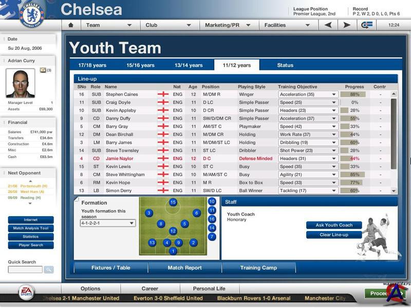 Системные Требования Операционная система: Microsoft Windows 2000/XP (Microsoft Windows 95, Windows 98/ME и Microsoft Windows NT не поддерживаются) Минимальные системные требования: Процессор уровня 1.3 GHz Intel Pentium III (или выше) 512 MB оперативной памяти Видеокарта 32 MB (AGP/PCI-E), 64 MB желательно 3,5 Gb свободного места на жестком диске (для минимальной установки) Привод: 8x DVD-ROM DirectX 9.0c совместимая звуковая карта DirectX 9.0c или выше FIFA Manager 2007 - это продолжение серии игр FM. Игр[RIGHT]а будет обладать многими преимуществами перед FM 2006, в частности разработчики FIFA Manager 07 предоставляют игроку уникальную возможность - впервые в серии FIFA Manager (Тotal Сlub Мanager) вам предоставляется возможность выбрать себе любимого игрока, тренировать его, а затем управлять им в режиме 3D матча. Также существенно будут изменены трансферный рынок, молодежные команды, недвижимость (теперь в игре будет мини SimCity), статистика, а также 2D фотографии (более 8000 штук) .