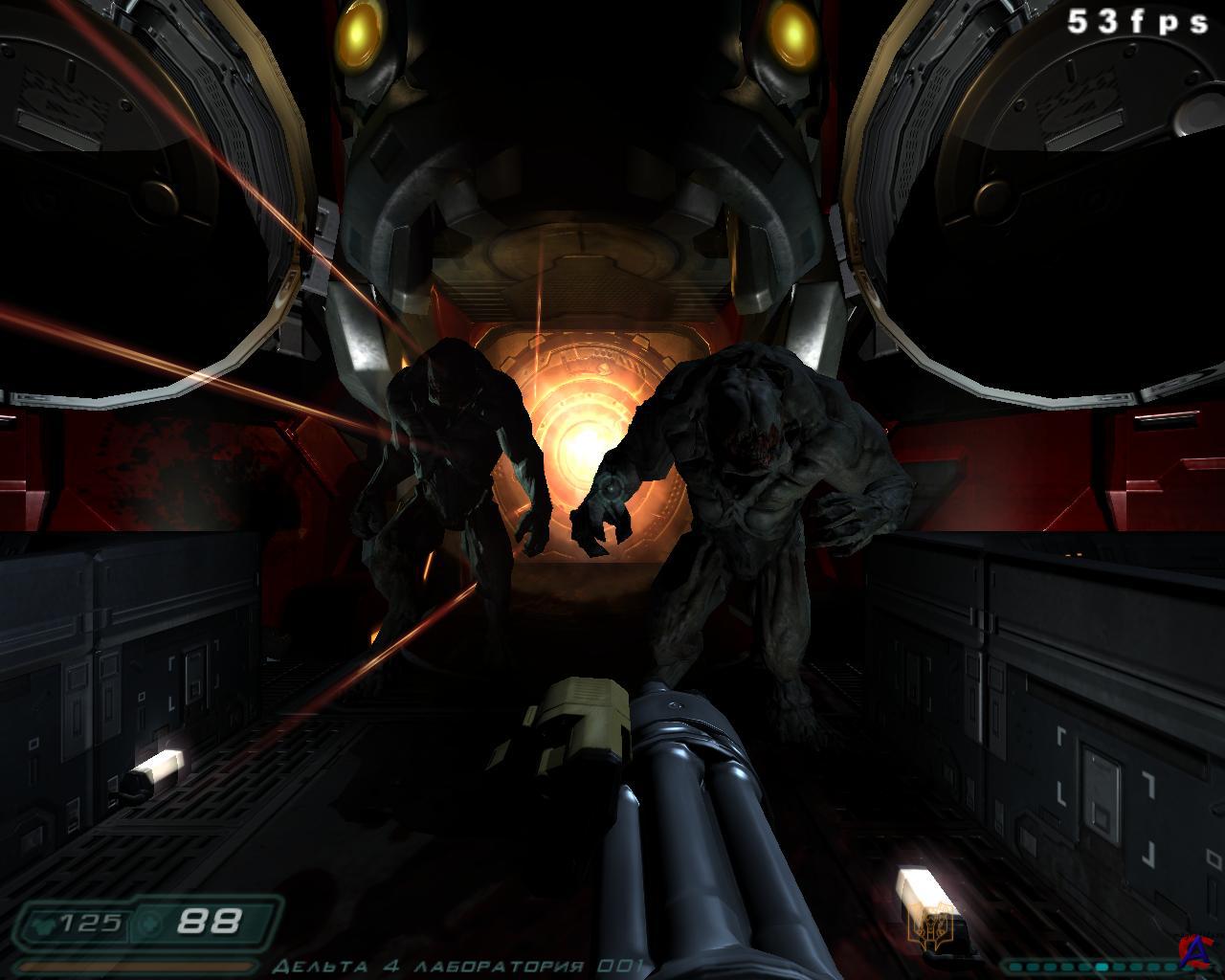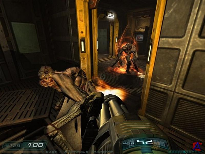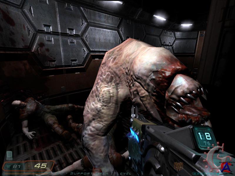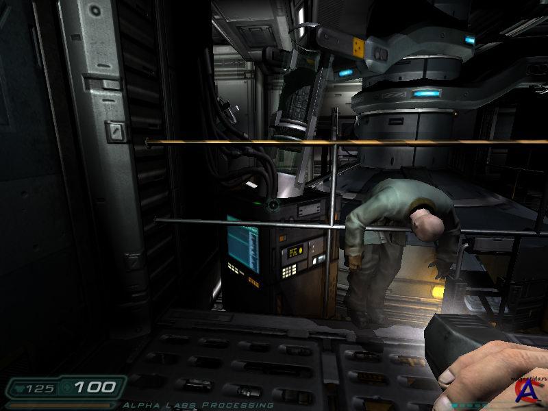 От издателя: Локализованная версия игры DOOM 3 от фирмы "1С" отличается крайне качественным, наиболее полным и адекватным переводом всего внутриигрового иноязычного контента. Диалоги персонажей, тексты, надписи, рекламные плакаты, радиопереговоры и голосовые сообщения, вся содержательная часть КПК главного персонажа - в версии DOOM 3 от "1С" действительно переведено всё, переведено адекватно и высшей степени качественно. Описание: Наука может многое - даже распахнуть врата в неизведанное. Остается лишь один вопрос - что ждет нас по ту сторону. И только один человек знает на него ответ. Только он способен остановить Зло. Он и есть граница между Землей и Адом. "Doom 3" - это настоящее произведение искусства в жанре ужасов. Такого вы еще не видели! Захватывающий сюжет, леденящее кровь действие, игровая графика, поднявшая планку качества на совершенно новый уровень и революционные технологии - все это "Doom 3". Игра, которая не оставит вас равнодушным. "Doom 3" - это одна из самых страшных и атмосферных компьютерных игр за всю историю человечества. Особенности игры: * 3D-action от компании id Software; игра, ставшая легендой еще до своего рождения. * Непревзойденное качество графики, высочайший уровень детализации и объемный звук (5.1) гарантируют вам полное погружение в атмосферу ужаса и кошмара. * Грандиозное сражение с посланниками Ада, а также многопользовательские возможности - различные варианты режима deathmatch и командный бой. Оружие: Кулаки, Фонарик, Пистолет, Дробовик, Автомат MG-88, Пулемёт (Max-2), Граната, Плазмомет (Max-4), Ракетница, BFG9000, Бензопила, Душекуб. Список уровней: Всего в Doom 3 присутствует 27 уровней. Большей частью они довольно большие и требуют от 1 часа на каждый при первом прохождении игры. - Вступление (Марс-Сити 1): Короткое обучение основным действиям в игре. (Добро пожаловать на Марс!) Морской пехотинец прибывает на Марс, идёт в штаб морской пехоты и получает здесь своё первое задание. Вместе с ним также прибывает советник правительства Элиотт Свонн, с ходу вступающий в спор с доктором Бертругером. - Подземный уровень Марс-Сити: Ещё более короткое обучение, затрагивающее ещё некоторые особенности игры. В здании центра связи дела начинают идти скверно. Неизвестные существа заполняют базу. Начинается тревога и массовая бойня. Появляются импы (imps). - Марс-Сити (2): Тот же самый уровень, что и во вступлении, но уже после тревоги. Штаб морской пехоты, куда спешил герой полностью разгромлен. - Администрация UAC: Герой-солдат встречает опасного монстра — пинки (Pinky)(розовенький). Непонятная растительная органическая субстанция начинает распространяться по базе, и начинают телепортироваться неизвестные монстры. - Комплекс Альфа — сектор 1: Построенная в 2095 году и расположенная на второй площадке, Альфа является центральной исследовательской лабораторией UAC. В Секторе 1 находятся СФД (Субатомный Фазовый Деконструктор) и Гидрокон. Появляются магготы (maggots). - Комплекс Альфа — сектор 2: Появляются трайты (trites). Через окно в одной из комнат можно увидеть проходящую рядом команду морпехов Браво. - Комплекс Альфа — сектор 3: В нём можно найти хорошо спрятанный плазмомёт и, при желании, ещё и пулемёт. - Комплекс Альфа — сектор 4: Игрок должен воспользоваться либо EFR (реактор по переработке плазмы для BFG), либо выдвижными мостами. В этом уровне присутствует печально известная сце
