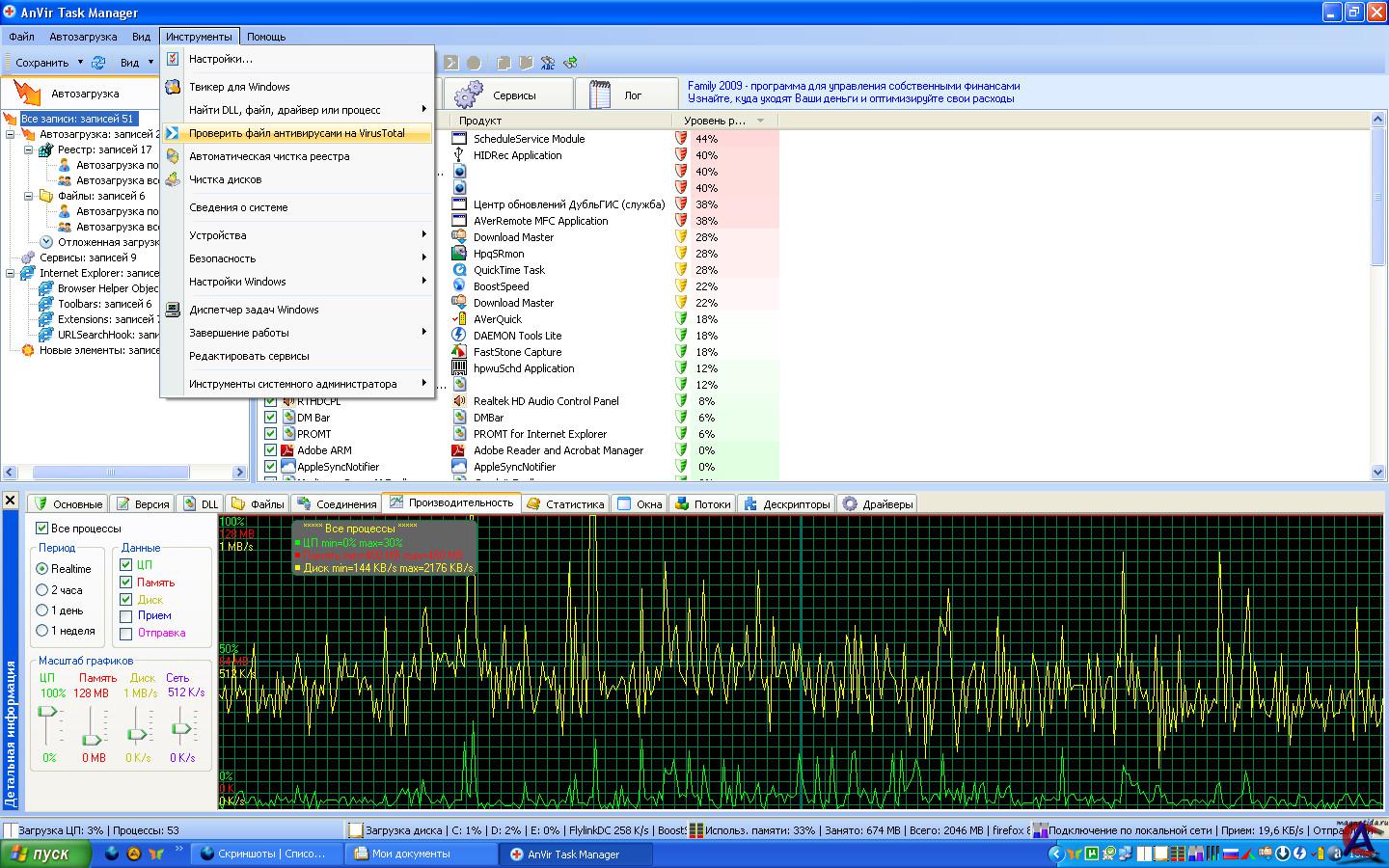 AnVir Task Manager - это бесплатная системная утилита, которая позволяет контролировать все, что запущено на компьютере, а также предоставляет удобные инструменты для настройки компьютера Управление автозагрузкой, запущенными процессами, сервисами и драйверами и замена Диспетчера Задач Обнаружение и удаление вирусов и spyware Тонкая настройка XP и Vista, включая установку скрытых настроек Ускорение загрузки Windows и работы компьютера Поддерживаемые операционные системы: