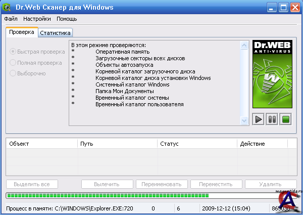 Лечащая утилита Dr.Web CureIt!® обновленна. На Вашем ПК установлен другой антивирус, но вы сомневаетесь в его эффективности? С помощью утилиты Dr.Web CureIt!® без установки Dr.Web в системе Вы можете быстро проверить Ваш компьютер, и, в случае обнаружения вредоносных объектов, вылечить его. Как выяснить, инфицирован ли Ваш компьютер? 1. Скачайте Dr.Web CureIt!, сохранив утилиту на жесткий диск. 2. Запустите сохраненный файл на исполнение (дважды щелкните по нему левой кнопкой мышки). 3. Дождитесь окончания сканирования и изучите отчет о проверке. Вам нужны другие доказательства?