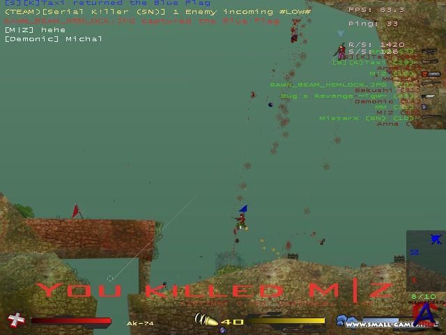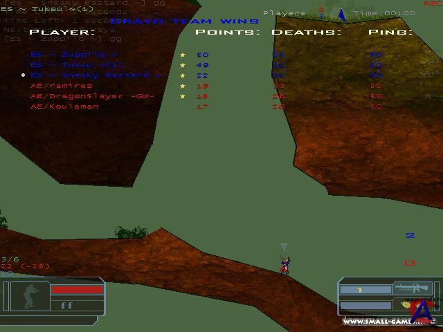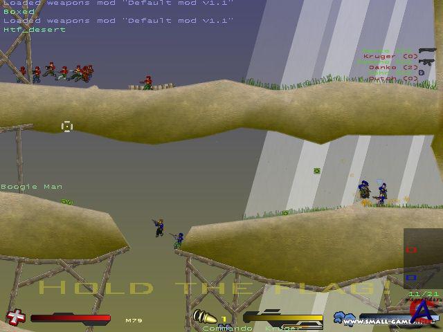 Soldat 2D — это полностью современный сетевой FPS, но выполненный в виде двумерного скроллера. Проще всего описать игру как «плоский Counter-Strike». • Разработчик: Инди-игра • Офф. сайт: www.soldat.pl • Язык: Русская версия • Размер: 13,7 мб • Системные требования: Операционная система: Windows XP SP2 Процессор: Pentium III 1.5 Ггц Память: 256 Мб Видеокарта: 64Мб Directx 9.0c-совместимая 3D видеокарта(Уровня GeForce4 и выше, кроме встроенных видеокарт и MX серии) Аудиокарта: Direct-X совместимая • Подробное описание игры: Геймплей Counter-Strike, потеряв лишнее измерение, неожиданно преобразился. Во-первых, человечки умеют шустро прыгать и даже немного летать, так что типичный бой здесь похож на воздушный балет. Во-вторых, и в главных — в этой игре удивительно продуманный баланс оружия. От версии к версии разработчик его поддерживает, не давая процессу отстрела врагов стать чересчур предсказуемым. Вот, к примеру, крупнокалиберная снайперская винтовка Barrett M82 — здешний «слонобой». Бьет она без промаха и наверняка — только вот между нажатием кнопки и выстрелом проходит едва ли не секунда «на изготовку», а на бегу и в прыжке из этой бандуры трудно попасть даже в того самого слона. Не стрельба, а настоящая игра в игре. «…Через двадцать минут и сто смертей дна у игры все еще не видно. Игрушечные бойцы в игрушечных джунглях послушно следуют законам физики: ловко прыгают, перекатываются и залегают, «слонобой» почему-то не хочет стрелять вовремя, а микроскопические гранаты совершенно не видны в густой траве. Под ногами раздается очередной взрыв, две половинки моего тела шлепаются наземь по всем правилам ragdoll-анимации, голова грустно летит куда-то вдаль…» Таким же набором недостатков и достоинств обладают почти все «стволы» Soldat 2D. Больше того: не только стрельба, но и прыжки, бег и полеты подчиняются дотошному физическому движку. Именно поэтому так опасны здесь гранаты (а они в сетевой игре сыплются дождем), и так важно легко и правильно двигаться. Результат налицо: схватки получаются разнообразные и непредсказуемые, а хороший игрок превращается в гибкого тактика и записного акробата. Коммьюнити: Около 550 серверов и 1200 игроков находятся в онлайне в любое время. Ссылка на игровые сервера - rr.soldat.pl/