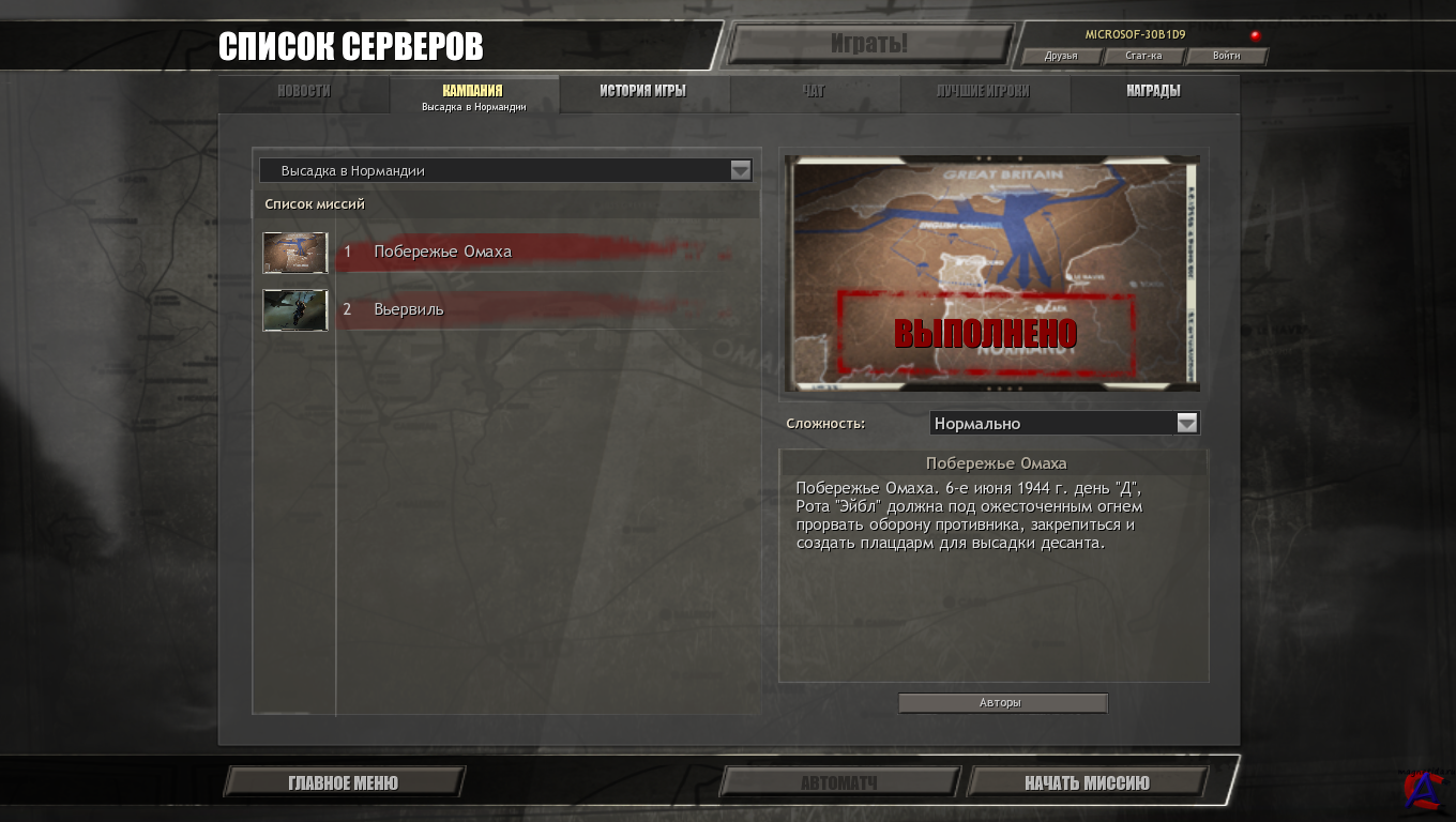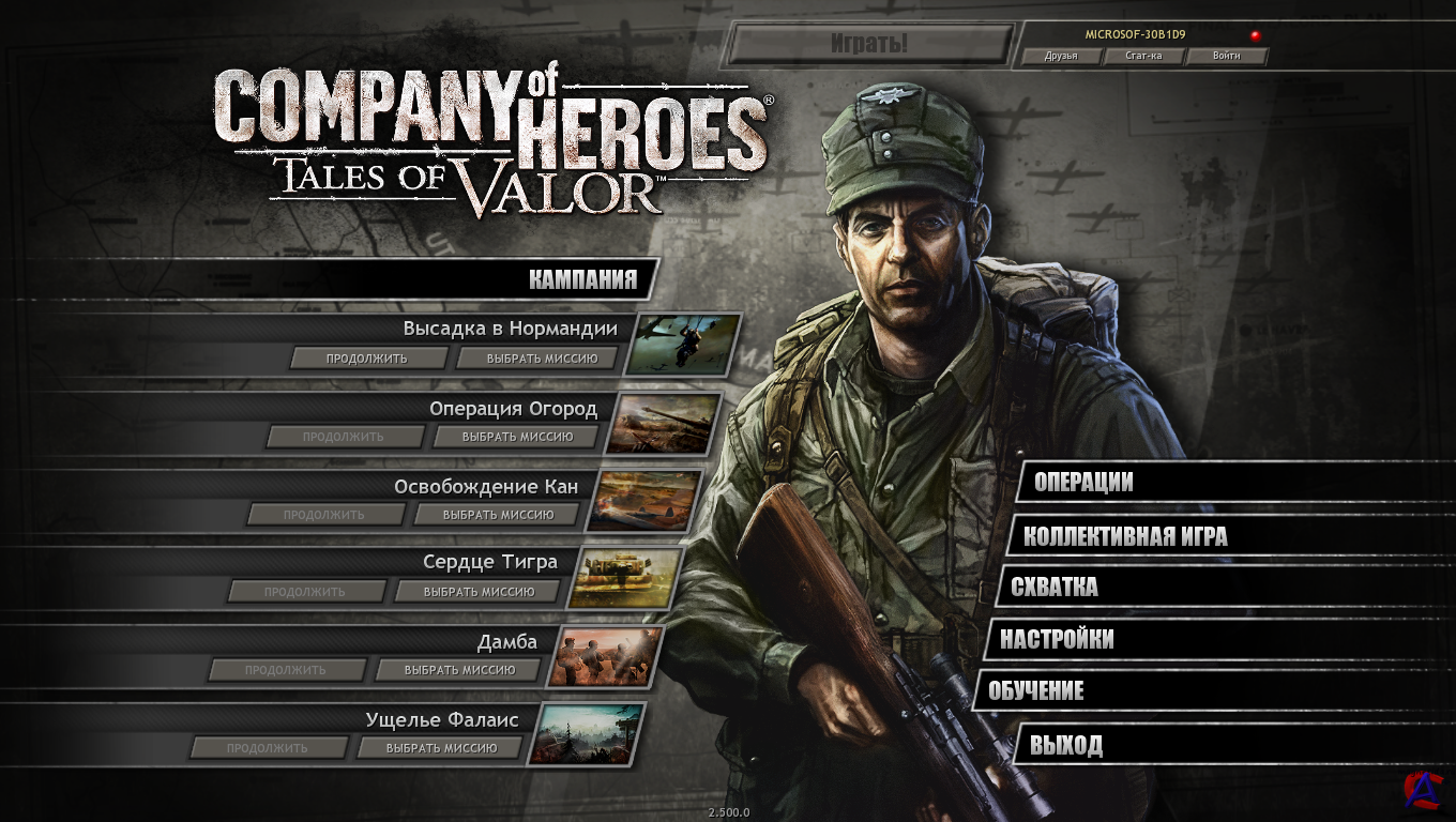 Company of Heroes Антология Repack. Год выпуска: 2009 Жанр: RTS (Real-Time Strategy) Разработчик: Relic Entertainment Издательство: THQ Платформа: PC Gamespot рейтинг: 8.7 Системные требования: є Операционная система: Windows XP/Windows Vista є Процессор: 2.0 Ghz Intel Pentium IV є Оперативная память: 1 Гб є Видеокарта: совместимая с DirectX® 9.0c, с 64 Мб оперативной памяти є Звуковая карта: Звуковое устройство, совместимое с DirectX® 9.0с є Свободное место на жестком диске: 10 Гб Тип издания: лицензия Язык интерфейса: Multi5 Crack: Эмуляция mini-образа. Описание: Company of Heroes - настоящая революция в мире стратегий в реальном времени, повествующая о подвигах солдат десантных войск США во время Второй мировой. Начав игру с рокового дня «Д» и высадке на Омаха-бич, игрок вскоре окажется в самом центре боевых действий на втором фронте. Ощутите небывалую силу, отвагу и храбрость героев, определивших судьбу всего человечества на годы вперед. Испытайте себя на непревзойденных по динамизму и накалу страстей виртуальных полях сражений Второй мировой. В Opposing Fronts вам придется принять под свое командование две новые армии: немецкую элитную танковйю гвардию, смертоносные механизированные части, элита Вермахта, не имеющие себе равных в огневой мощи и мобильности и 2-ю британскую армию, богатство тактических возможностей которой позволяет успешно противостоять любому врагу. Две сюжетные кампании, реконструирующие самые яростные и кровопролитные сражения на Западном фронте: противостояние немецкой танковой гвардии десанту союзников в Нормандии и бои за освобождение французского Кана в составе 3-го батальона британской армии. В трех уникальных кампаниях Tales of Valor вам предстоит провести свои войска через ключевые сражения Второй Мировой войны и занять место среди лучших полководцев середины XX века. Нужна лишь победа! 1. Установить монтируя COH_OF_TOV.iso 2. После установки монтировать COH_MINI.mds 3. Кликнуть ярлык на рабочем столе. 4. При запросе диска нажать "продолжить". P.S.: Открыты все главы миссий, диск спрашивает, но не требует. Сжато местами видео. Сам не понял, антология это или нет...кто в курсе сообщите.