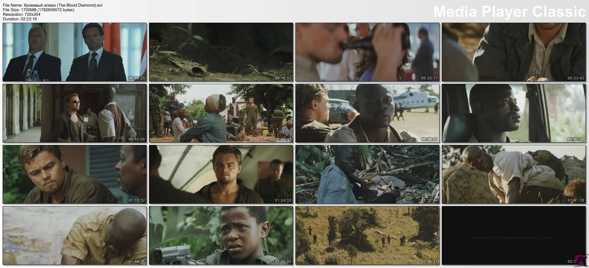 Качество: DVDRip Видео кодек: 720x304 (2.37:1), 23.976 fps, DivX Codec 5.02 build 481 ~1203 kbps avg, 0.23 bit/pixel Аудио кодек: 48 kHz, AC3 Dolby Digital, 3/2 (L,C,R,l,r) + LFE ch, ~448 kbps Продолжительность: 02:23:19 Перевод: Русский, Дублированный Формат: AVI Информация о фильме: 1999, Сьерра-Леоне. Гражданская война. Кровь и хаос. В этой безрадостной атмосфере орудует ловкий контрабандист, специальность которого бриллианты. Ему нет особенного дела, что эти камешки используются для дальнейшего нагнетания межнациональной розни.Но однажды контрабандист встречает местного фермера, у которого пропал сын его, говорят, забрали в «детскую армию», используемую на фронтах гражданской войны. И два разных человека образуют противоестественную коалицию