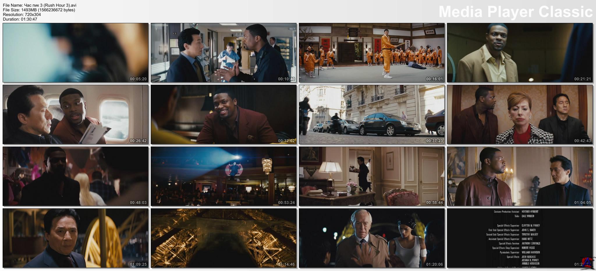 Качество: DVDRip Видео кодек: 720x304 (2.37:1), 23.976 fps, XviD MPEG-4 ~1842 kbps avg, 0.35 bit/pixel Аудио кодек: 48 kHz, AC3 Dolby Digital, 3/2 (L,C,R,l,r) + LFE ch, ~448 kbps Продолжительность: 01:30:47 Перевод: Русский, Дублированный Формат: AVI Информация о фильме: Лос-анджелесского полицейского Джеймса Картера, допустившего грубую ошибку при аресте подозреваемого, переводят на гораздо менее престижную должность в дорожной полиции. Тем временем гонконгский полицейский инспектор Ли получает спецзадание: он должен охранять китайского посла Хана, который направляется в Лос-Анджелес, чтобы произнести там речь на саммите Всемирного уголовного суда.Хан намеревается разоблачить интриги китайской Триады самого опасного криминального синдиката в мире и вывести на чистую воду преступных боссов. Представители Триады, разумеется, не дремлют. Они отправляют в Лос-Анджелес наемного убийцу, которому удается ранить посла в тот самый момент, когда он начинает произносить свою разоблачительную речь. Ли бросается вдогонку за преступником. Тем временем Картер, услышав по полицейскому радио сообщение о покушении на посла, мчится на место преступления и, естественно, только путается под ногами у Ли.
