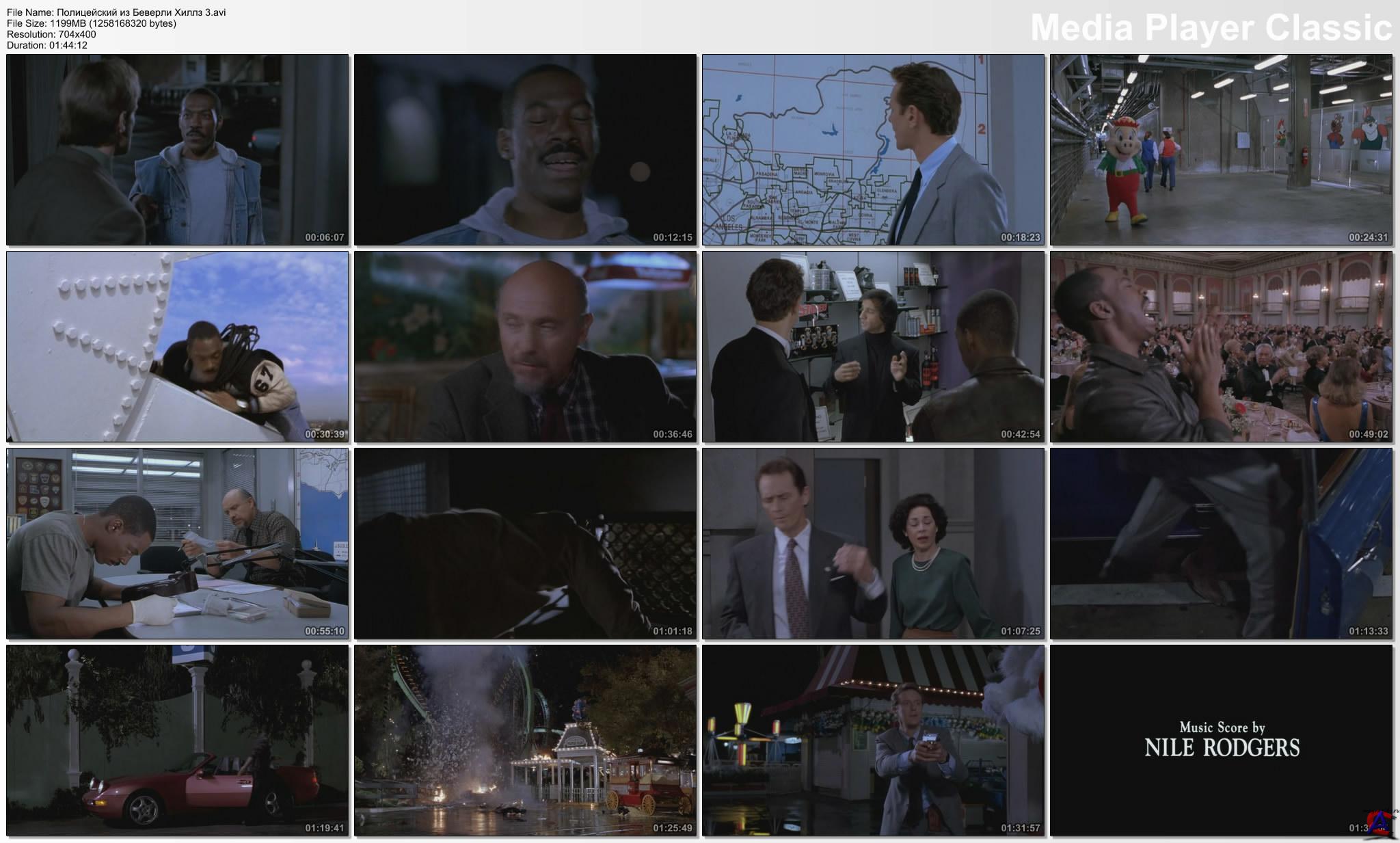 Качество: DVDRip Видео кодек: 704x400 (1.76:1), 23.976 fps, DivX Codec 5.02 build 481 ~1344 kbps avg, 0.20 bit/pixel Аудио кодек: 48 kHz, MPEG Layer 3, 2 ch, ~128.00 kbps avg Продолжительность: 01:44:12 Перевод: Русский, Дублированный Формат: AVI Информация о фильме: После перерыва в семь лет полицейский из Детройта Аксель Фоули (Эдди Мерфи) снова вынужден побывать у своих друзей в Беверли-Хиллз. Его приводят туда поиски убийцы любимого шефа.В результате парк аттракционов «Мир чудес», где бандиты в жутком подполье печатали фальшивые доллары, стал ареной боевых действий, а наш герой отомстил убийцам, прославился и познакомился с очаровательной работницей парка.