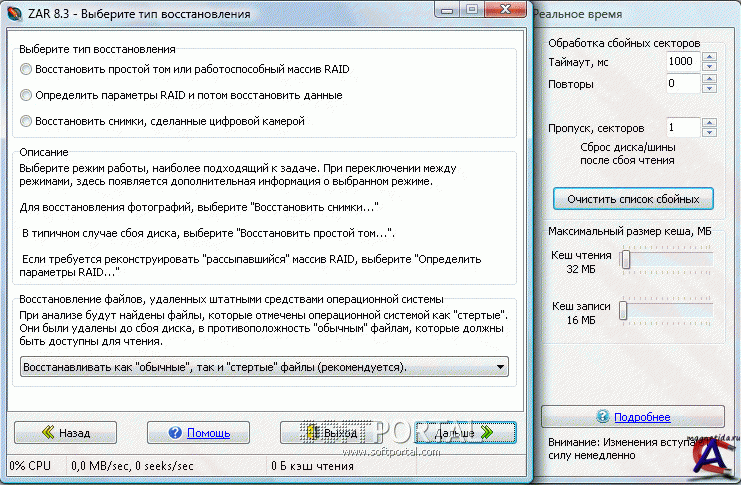 Год выпуска: Версия: 8.4.15 Full Portable RU Разработчик: Zero Assumption Software Таблетка : Есть Язык интерфейса: русский Размер файла: 7.32 МБ Описание: Zero Assumption Recovery - Финальная сборка качественной программы восстановления данных с поддержкой длинных и русских имен файлов. Программа видит файловые системы FAT16/32 и NTFS (в том числе и NTFS5), может работать с длинными именами файлов и различными языками, поддерживает NTFS-компрессию. ZAR восстанавливает разделы FAT и NTFS, включая и расположенные на аппаратных массивах RAID0 или RAID5. Есть режим восстановления цифровых фотографий и автоматический поиск потерянных разделов. Zero Assumption Recovery работает в режиме "только чтение", и не делает никаких изменений на поврежденном томе. ZAR будет полезен в тех случаях, когда жесткий диск был отформатирован, поврежден вирусами, или потеря данных была вызвана сбоем программного обеспечения или другим физическим воздействием. В состав программы включена DOS-версия утилиты. www.polyakoff.ru/DataRecovery.html -здесь подробно описывается как можзно восстановить фотографии с ранне отформатированной флешки. Системные требования: любые