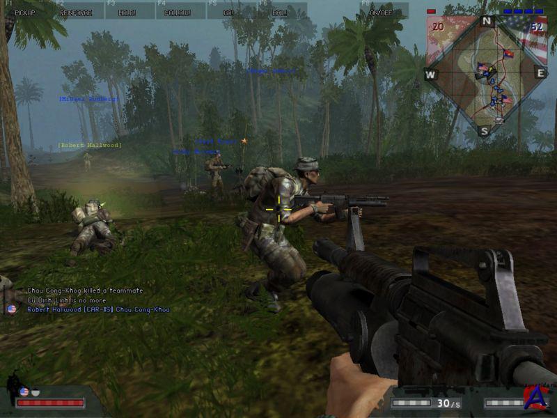 Описание игры: Сюжет: Действия игры развивается во время войны во Вьетнаме. В игре присутствуют две враждующие стороны: армии США / Южного Вьетнама и армия Северного Вьетнама / НФОЮВ. Особенность игры - большое разнообразие карт, основаных на реальных исторических событиях и местах, каких как Тропа Хо Ши Мина, Битва за Хюэ, Долина Йа-Дранг, Операция «Flaming Dart», Осада Кхесани, и Падение Сайгона. Многие части игры были созданы под влиянием популярных фильмов о Вьетнамской войне. Примером может служить игровая возможность прослушать Полёт Валькирий по радио и тигровая окраска гранатомёта M79 из фильма Апокалипсис сегодня. Геймплей: Геймплей в "BATTLEFIELD Vietnam" точно такой же, как и в предшественнике — "BATTLEFIELD 1942": каждая команда появляется на своих точках и выдвигается к нейтральным для их захвата, после чего отвоёвывает контрольные точки противника и убивает солдат врага. Если игрок в процессе игры погибает, он может возродиться на одной из отвоёванных точек, сменив при этом свой класс (и поменяв оружие). Особенности: Построенный на усовершенствованном движке (Refractor Engine 2) от "BATTLEFIELD 1942", "BATTLEFIELD Vietnam" имеет много новых и усовершенствованных функций от своего предшественника. Выбор оружия, доступного игроку в игре соответствует тому, какое было во время Вьетнамской войны у обоих сторон конфликта. В игре представлен богатый выбор военной техники, доступной для управления. Игроки, которые находятся на пассажирских сиденьях могут вести огонь из личного оружия.Также в игре появились противопехотные мины и возможность авиадоставки транспортных средств.