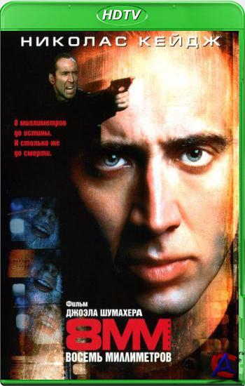 Качество: HD Видео кодек: Xvid 1280x544 23.98fps Аудио кодек: Dolby AC3 48000Hz 6ch 384Kbps Перевод: дубляж Качество: HD Видео кодек: MPEG4 Video (H264) 1280x544 23.98fps Аудио кодек: Dolby AC3 48000Hz 6ch Перевод: дубляж Жанр: триллер, детектив Премьера в мире: 19 февраля 1999 Рейтинг mpaa: R - Лицам до 17 лет обязательно присутствие взрослого Продолжительность: 123 мин. Информация о фильме: Свет кинопроектора способен проникать в самые темные уголки человеческой души. На пленке, которая попала в руки частного детектива, запечатлена сцена зверского убийства молодой женщины. Он получает задание установить личность несчастной и выяснить, действительно ли было совершенно преступление. В стремительном мелькании страшных кадров сыщик безуспешно пытается различить лицо главного режиссера. Помимо своей воли детектив становится частью жестокого сценария, где ему отведена роль жертвы. В 8 миллиметрах от гибели любой неосторожный шаг может оказаться роковым. Сценарий к фильму написал известный сценарист Эндрю Кевин Уокер ("Семь"), а постановщик Джоэл Шумахер ("Телефонная будка", "Охота на Веронику", "Призрак оперы") в одном из интервью определил тему картины как попытку погружения человека в самые глубины мрака. Главный герой в исполнении Николаса Кейджа стремится разобраться в истоках человеческого насилия.