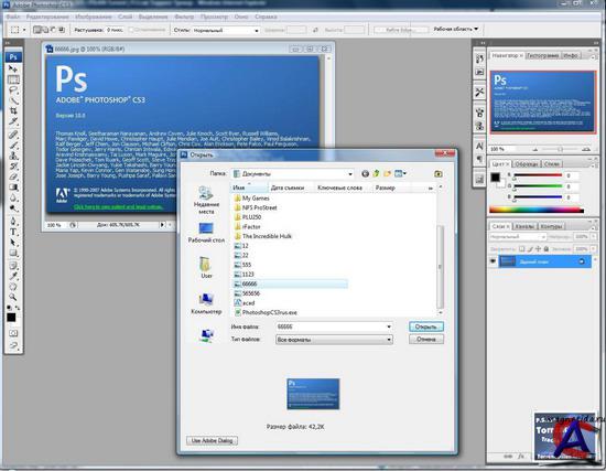 Версия: CS3 Активация: не требуеться Язык интерфейса: русский Описание: Adobe Photoshop - является безусловным лидером среди профессиональных графических редакторов за счет своих широчайших возможностей, высокой эффективности и скорости работы. Программа предоставляет все необходимые средства для коррекции, монтажа, подготовки изображений к печати и высококачественного вывода. Adobe Photoshop CS3 Portable работает без установки на Ваш компьютер, а так - же с любого носителя, - USB Flesh, или CD Основное назначение программы Adobe Photoshop – создание фото реалистических изображений, работа с цветными сканированными изображениями, ретуширование, цветокоррекция, коллажирование, трансформации, цветоделение и другое. Adobe Photoshop располагает всеми методами работы с точечными изображениями, при этом имеет возможность работы со слоями и использует контуры. Программа позволяет легко изменять цветовое представление документов (битовое , в градациях серого, дуплекс, индексированные цвета, RGB или CMYK). Photoshop – это программа растровой графики, то есть любой элемент изображения строится по точкам. Adobe Photoshop – это профессиональный графический редактор, который при этом достаточно прост в освоении и использовании. Вторая, не менее обширная, сфера применения программы - Web-дизайн и электронные публикации. Последние версии программы включают множество специальных функций, ориентированных именно на Web-дизайн. Можно совершенно без преувеличения сказать, что Photoshop находится в арсенале каждого профессионального компьютерного дизайнера и верстальщика. Новая версия программы обогатилась множеством новых полезных инструментов. Системные требования: Проверена только на XP про остальные не знаю ВНИМАНИЕ:Касперский на него реагирует как на вирус