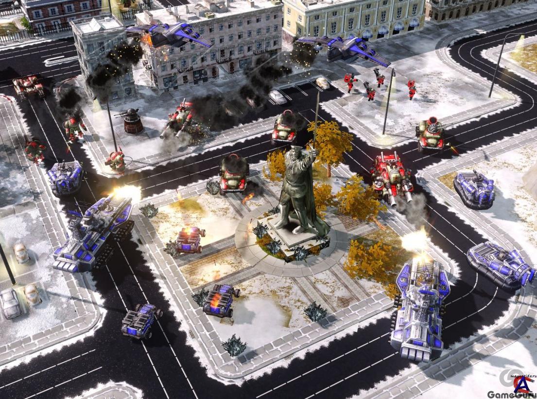 Command & Conquer: Red Alert 3 — компьютерная игра в жанре стратегии в реальном времени из серии Command & Conquer от Electronic Arts Los Angeles. Это первая игра из серии Red Alert после Yuri"s Revenge, вышедшей в 2001 году. Игра вышла на трех платформах: Windows, PlayStation 3 и Xbox 360. При этом она является первой RTS для PlayStation 3. Действие игры происходит в альтернативной ветке истории, в которой Советский Союз не распался и участвует в Третьей мировой войне, ведя войну против Соединённых Штатов Америки и Японии. Игра была анонсирована 14 февраля 2008 года и издана в России 5 ноября 2008 года компанией Electronic Arts Russia в переводе от «Софт Клаб». 13 марта 2009 года вышло дополнение к Red Alert 3 под названием «Red Alert 3: Uprising». Сюжет Действие игры разворачивается сразу после поражения Советского Союза во второй части игры. Полковник Черденко, один из близких приближенных Генерального Секретаря Романова, приводит в действие секретный проект учёных СССР - машину времени. В результате он попадает в прошлое, где благополучно уничтожает Эйнштейна, сделавшего решающий вклад в техническую мощь Альянса. Таким образом, все будущее вселенной Red Alert меняется: Черденко становится генсеком вместо Романова, главнокомандующим советской армией вместо Владимирова теперь является генерал Крюков, а советские войска уже вернули почти всю Европу и готовятся выбить НАТО из Англии. Однако неожиданно на горизонте появляется новый враг — Империя Восходящего солнца (Япония), которая наносит внезапный удар по восточным границам СССР. В трех кампаниях соответственно за каждую сторону игроку предстоить определить дальнейшее развитие событий. Геймплей Основная кампания Одной из главных особенностей игры, по обещаниям разработчиков, станет совместное прохождение основной сюжетной кампании. Данная идея в стратегиях реального времени воплощается впервые. В случае одиночного прохождения вашим союзником будет компьютер. Тут разработчики сдержали слово. В каждой миссии действительно даётся компьютер-союзник, который сам строит базу, атакует, т.д. Впрочем, чаще всего, столкнувшись с мощной защитой, он останавливается, ожидая, что вы сделаете умный ход, и уничтожите защиту. Что немаловажно, ему можно указывать цели для атаки, даже в простом сражении. К примеру, вражескую артиллерию, единственное средство ПВО, или просто чуть недобитое здание. В кампании так же появятся специальные приказы, вроде захвата здания. Так же разработчики заявили, что собираются отойти от принципа «раша». То есть уже нельзя будет построить большое количество сильных юнитов и победить только за счёт этого, как это было в прошлых играх серии. Впрочем, поиграв немного, можно понять, что это не так. Использовав, к примеру, Наташу (которая отстреляет пехоту и подготовит танки врага для захвата), тесла-пехотинцев и призывников для захвата танков и отвлечения, в сочетании с пятью мортирами для катапультации через воду, можно ликвидировать средних размеров танковый отряд, после чего уже с использованием сильных амфибий, «способностей» (как в «Generals») можно легко уничтожить базу противника. Впрочем, действительно, роль обычным солдатам даётся большая, значительнее, чем, к примеру, в «Red Alert 2». Например, только советские солдаты могут относительно без потерь выгнать врага из дома с помощью коктейлей Молотова, а щит натовских миротворцев до неприличия силён. Появились так