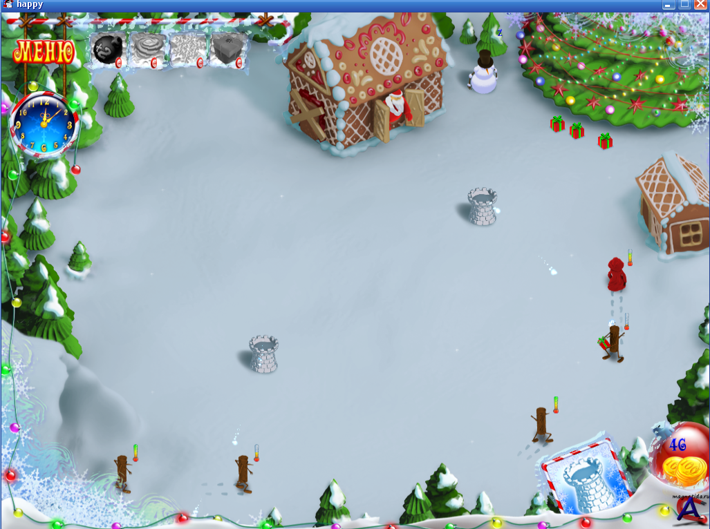Системные требования для игры Рождественский переполох: PII-600 / 64M RAM / 16M Video 3D, Windows XP, DirectX 9.0 Жанр: казуальная аркада для детей. Каждый год у Деда Мороза что-то случается. Вот и на этот раз у него неприятности – пещерные монстры захотели украсть подарки. Вы должны выступить в роли капитана эльфов и командовать возведением башен на пути неприятеля. Возможно, монстры ничего не понимают в праздниках, но спасаться от ваших снарядов у них отлично получается. Итак, в честь светлого праздника Старый Новый Год, представляем вам увлекательную игру «Новогодний переполох», в которой вам предстоит расправляться со злобными пещерными монстрами и отбирать у них украденные подарки. Для этого вы должны возводить на пути монстров башни из снега. Как только один из монстров оказывается в пределах досягаемости башен, они начинают забрасывать его снежками. Монстр постепенно слабеет и исчезает, выронив подарок. Веселая игра «Новогодний переполох» понравится всем без исключения игрокам. Забавные персонажи, увлекательный геймплей и отличная музыка поддержат в вас новогоднее настроение. И не отчаивайтесь, если вы вдруг упустите монстров с игрового поля. Ведь цель игры – собрать украденные подарки и отдать послушным детишкам. Игра вышла: 14.01.2010года. Ключи не требует!