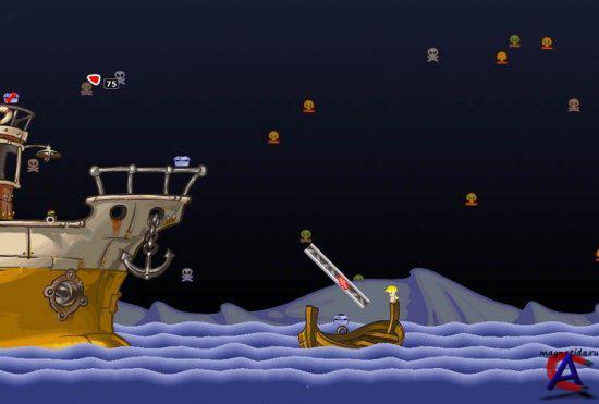 Требования: Pentium III/Athlon 1 ГГц 256 Мб памяти 3D-ускоритель с 64 Мб памяти 2 Гб на винчестере Описание игры Worms - Антология Worms — культовая серия компьютерных игр, 1-ая изрядная часть которой вышла в 1994 году. Это пошаговая игрушка, сочетающая в себе элементы нескольких жанров. Она веско различается от более отличительных представителей жанра пошаговых стратегий, но её можнож условно отнести к этому жанру поэтому, что в данной игрушке находится стратегическая сочиняющая, и ходы совершаются по очереди. Желая серия Worms является самым знаменитым представителем данной ветки пошаговых игр, в первый раз использующийся в ней принцип возник в 1990 году в игрушке Tank Wars. Желая та игрушка была чрезвычайно бедна анимацией, и боевые единицы были неподвижными, но игровой громкий процесс был этот же, что и в получивших позже великую колоссальная популярность угрушках серии Worms. Игрушка Worms была разработана программерами компании Team17 для ПК Amiga 500, на бейсикоподобном языке AMOS. Для Amiga существует собственная серия игр Worms, в 1999 году Team17 стали развивать серии данной игрушки на иных платформах « начиная с Worms Armageddon ». На игровом поле размещаются забавные мультяшные персонажи — червячки, вооружённые до зубов самым разнородным и смертоносным арсеналом « от бейсбольных бит до ядерных бомб ». Каждый червячок — это боевая единица, имеющая принадлежность к одной из 6 команд « различаются по цвету индикаторов имени и здоровья, флагу команды; также озвучке », управляемых разными азартный игроками « будь то живые азартный игроки, или ИИ », при этом в сетевой игрушке могут принимать крупная роль лишь живые азартный игроки. Во жаркое жаркое время игрушки на игровом поле временами возникают т. н. бонусы — ящики с орудием, приборами и аптечками. В режиме обыденного боя: За один ход « на который отводится различное жаркое жаркое время, в зависимости от текущего комплекта верховодил », червячок обязан нанести как можнож больший великий урон червячкам конкурентов « и по способности, не задеть при всем этом собственных », или же выполнить некое условие, которое также зависит от текущего комплекта верховодил. Игрушка длится до тех пор, пока: 1. На поле имеются червяки по последней мере 2-х различных коалиций. 2. Таймер не дойдёт до нуля « ежели задан режим игрушки на жаркое жаркое время ». В данном варианте наступает «Внезапная смерть» — одно из последующих событий: * раунд кончается; * удивительное здоровье всех червячков на поле равняется к 1, что делает их убиваемыми с 1-го попадания; * игровое поле начинает с каждым последующим ходом погружаеться все поглубже под воду, что с течением времени приводит к погибели червяков, абсолютно не умеющих плавать; * прилетает «Ядерный удар», который, по сути, соединяет две прошлые беды: все червяки дружно заболевают и начинают утрачивать некое дикое дикое количество здоровья « от 1 до 5 единиц » за ход, а вода сходу сильно поднимается и продолжает подниматься с каждым ходом. В режиме задания « одиночная игрушка »: За ограниченное дикое дикое количество ходов/выстрелов/действий, азартный игрок обязан выполнить ряд поставленных сценарием критерий « к примеру, убить червячков под управлением ИИ; смонтировать ящики с оружием/бонусами и т. д. ». Более эффектные смерти/разрушения/глупости иллюстрируются автоматическим повтором. Особенности игры Worms - А