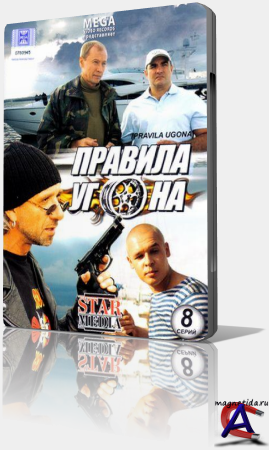 Качество: DVDRip. Видео кодек: 720x400 (1.80:1), 25 fps, XviD build 50, 1174 kbps avg, 0.16 bit/pixel. Аудио кодек: 48 kHz, AC3 Dolby Digital, 2/0 (L,R) ch, 256.00 kbps avg. Жанр: боевик, криминал, детектив. Перевод: не требуется. Премьера в РФ: 20 сентября 2009 Продолжительность: (1серия~45 мин.) Информация о фильме: Саша Волков работает на СТО, он хочет разбогатеть и со временем открыть собственный авто-магазин. Несмотря на юный возраст, Александр профессионал в своем деле, всё свободное время Волков посвящает машинам. Но о честном заработке Саша может только мечтать: весь авто-бизнес в городе контролируют две враждующие группировки, одну из которых возглавляет депутат и бизнесмен Идрис Далаков, а другую владелец авто-склада Влад Ботов. Заручившись поддержкой властей и милицейского руководства, авто-мафия выработала особый кодекс правила угона. Закрыв глаза на беспредел, самые влиятельные люди города могут не тревожиться о неприкосновенности своих авто.