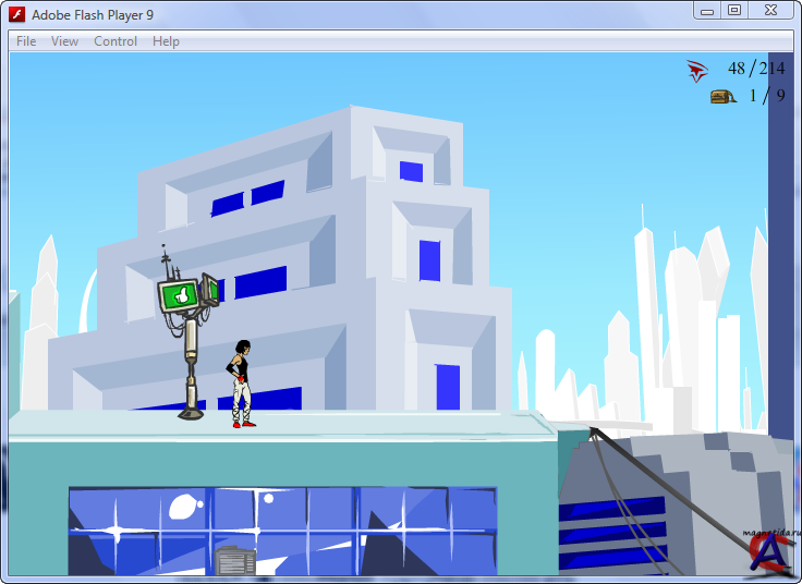 Некое подобие Mirror s Edge в 2D перспективе. Игра разрабатывается на знаменитый сегодня для браузерных игр технологии Flash. Управление: Левая и правая кнопки: Бег Кнопка вверх: Горизонтальный бег по стене, вертикально забраться по стене Кнопка вниз: присесть, прокатиться S: Прыжок M: Управление музыкой Язык интерфейса: только английский Таблэтка: Не требуется