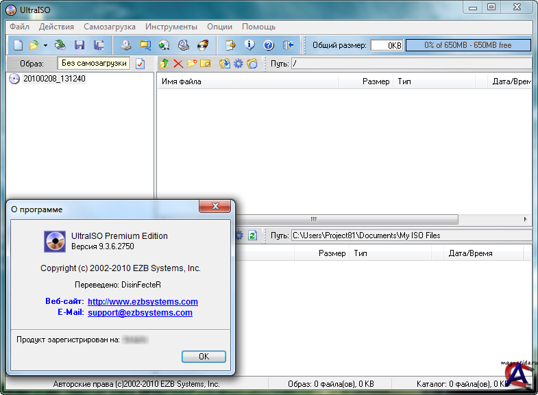 Год выпуска: 2010 Версия: 9.3.6 Build 2750 Retail Разработчик: EZB Systems, Inc. www.ezbsystems.com/enindex.html Платформа: Windows 7/Vista/2003/XP (32bit and 64bit), Windows 2000, ME, 98SE, 98, or Windows NT4.0 SP6a+ Совместимость с Windows 7: полная Системные требования: - Windows Vista/2003/XP (32bit and 64bit), Windows 2000, ME, 98SE, 98, or Windows NT4.0 SP6a+ operating system . - Intel Pentium 166MHz or above. - 64MB memory. - At least 10MB free hard disk space . - CD-ROM, CD-R/RW, DVD-ROM, the DVD-R/RW driver (copy compact disc image needs). - Mouse. Язык интерфейса: мультиязычный, включая русский Таблэтка: Присутствует Описание: Одна из лучших программ для работы с образами дисков. UltraISO позволяет корректировать образы CD и DVD - изменять данные или удалять их часть прямо из образов, не распаковывая их, а также создавать образы и записывать их на носители. Поддерживает работу с ISO, BIN/CUE, IMG/CCD/SUB, MDF/MDS, PDI, GI, C2D, CIF, NRG, BWI/BWT, LCD, CDI, TAO/DAO, CIF, VCD, NCD, GCD/GI, VC4/000, VDI, VaporCD и другими (менее популярными) форматами. UltraISO Premium Edition работает не только с файлами в формате ISO, но и с образами, созданными в таких популярных программах, как Alcohol 120%, Nero, NTI CD/DVD Maker, Virtual CD, CloneCD, BlindWrite и т.д. UltraISO Premium Edition может работать в паре с Nero Burning Rom и использовать движок этой программы для записи дисков.Кроме этого, программа позволяет создавать загрузочные UDF-образы, монтировать ISO-образы на виртуальные диски, созданные Daemon-Tools 4.x и Alcohol 120%, извлекать файлы из образов аудио CD при помощи командой строки. Можно делать образы дисков загрузочными. Также программа оптимизирует структуру iso-образа для экономии места на CD. Работает быстро и надёжно, с образами до 10 Гб размером, легко открывает образы аудио дисков и видео. Поддерживаются следующие форматы образов: BlindWrite (.BWI, .BWT, .B5I, .B5T), CDSpace (.LCD), CDRWin (.BIN, .CUE), CloneCD (.IMG, .CCD), DiscJuggler (.CDI), Duplicator (.TAO, .DAO), Easy CD Creator(.CIF), Fantom CD (.MDF, .MDS), Farstone Virtual Drive (.VCD), Gear (.P01, .MD1, .XA), Instant Copy (.PDI), Nero - Burning ROM (.NRG), Noum Vapor CDROM (.VaporCD), NTI CD-Maker (.NCD), PlexTools (.PXI), Prassi (.GCD, .GI), VCDROM Extension (.FCD), Virtual CD (.VC4), Virtuo CD Manager (.VDI), WinOnCD (.C2D), XBOX DVD.