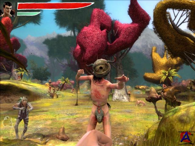 Мультиплеер: Отсутствует Издатель в России: Новый Диск Локализатор: Новый Диск Язык: русский-ангийский пополам)) Дата выхода: 6 февраль 2009 Сайты игры: www.aceteam.cl/zenoclash/ Объем: Один DVD Минимум: 1,4 ГГц, 512 Мб, 256 Мб видео Рекомендуем: 2 ГГц, 1 Гб, 1 Гб видео Описание: Услышав словосочетание «чилийская игра», ждешь как минимум чего-то необычного. И ACE Team оправдывает ожидания, выплескивая с экрана на зрителя концентрированную экзотику. Zeno Clash приглашает всех желающих в диковинный мир, где с трудом уживаются две группировки. Первая представляет собой одну большую семейную банду, во главе которой стоит нечто по имени Папомама, в буквальном смысле слова рожающее своих последователей. Второй лагерь состоит из живущих в лесу анархистов Корвидов, которые только и делают, что нещадно лупят друг друга и вообще всех, кто подвернется под руку. Меж этих двух огней оказывается Гэт – сын Папомамы, разочаровавшийся в своем предке и сблизившийся с Корвидами. Собственная семья опротивела Гэту настолько, что он даже пошел на убийство, прикончив родителя. Поиск ответа на вопрос «Зачем?» становится главным смыслом пребывания игрока в этой бредовой вселенной. Чтобы как можно более интересно подать сюжет, авторы чередуют реальные события с воспоминаниями героя. Однако и в прошлом, и в настоящем приходится заниматься одним и тем же: чистить клювы, бить морды и мять бока. По сути, вся игра представляет собой череду бескомпромиссных поединков, в которых зачастую приходится противостоять сразу нескольким противникам. Драки в Zeno Clash – маленький шедевр и предмет заслуженной гордости разработчиков. Авторам удалось так смоделировать потасовки на экране, что у игрока невольно возникает ощущение, будто по репе стучат не какому-то абстрактному виртуальному мачо, а ему самому. Фактически ACE Team пошла по тому же пути, что создатели Mirror’s Edge. Только те сделали ставку на скрупулезное отображение всех нюансов паркура, а чилийцы бросили силы на драки. Если земля неожиданно встает на дыбы и пыльный пол арены норовит треснуть по лбу, знайте – это кто-то огрел вас сзади чем-то тяжелым, и вы попросту упали на живот. Но еще не все потеряно. Можно подняться, ловко поставить блок, сделать ложный выпад и залепить открывшемуся противнику ногой в лицо. Главное – самому не поддаться на уловку и не подставить тело под вражеский выпад. По части разнообразия приемов и богатства тактических возможностей Zeno Clash, конечно, далеко до Street Fighter 4, зато среди экшенов от первого лица это абсолютный чемпион. Но если на подборку трюков жаловаться не приходится, то количество способов скрасить досуг неприятно удивляет. В Zeno Clash можно только драться, причем герой порой сталкивается с уже знакомыми противниками в одних и тех же декорациях. И чем больше времени проводишь за игрой, тем сильнее раздражает неприятный контраст. С одной стороны, хочется до конца разобраться в хитросплетениях сценария. С другой, однотипные поединки нагоняют тоску – реалистично получать по морде и давать сдачи интересно только первую треть всех приключений, а потом организм начинает настойчиво требовать новизны. Примечание: Надо кароче всё всё всё всё всё скачать запустить .exe файл (главное чтоб всё в одной папке было) любителям рока погромче звук зделать а не любителям потише и ждать смотреть и надеяться сто я или вы чонитьне на пута