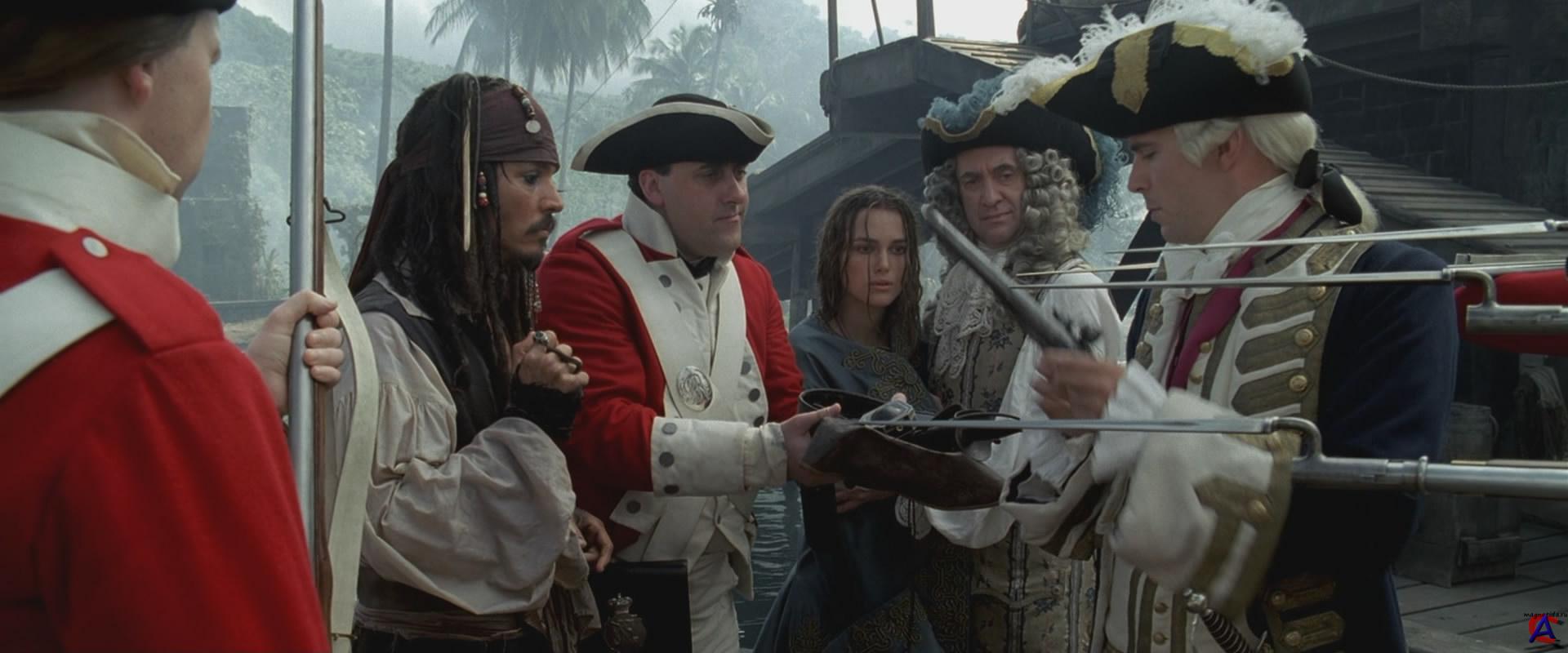 Качество: HD 1080р Видео кодек: MPEG4 Video (H264) 1920x800 23.98fps Аудио кодек: Dolby AC3 48000Hz 6ch Перевод: дубляж Качество: HDrip Vipernsk Видео кодек: MPEG4 Video (H264) 1282x534 23.98fps Аудио кодек: Dolby AC3 48000Hz 6ch Перевод: дубляж (последний скрин с этого рипа) Качество: HD 720р Видео кодек: MPEG4 Video (H264) 1280x528 23.98fps Аудио кодек: Dolby AC3 48000Hz 6ch Перевод: дубляж Качество: HD 720р Видео кодек: MPEG4 Video (H264) 1280x544 23.98fps Аудио кодек: Dolby AC3 48000Hz 6ch Перевод: дубляж Жанр: боевик, фэнтези, приключения Премьера в мире: 28 июня 2003 Премьера в РФ: 20 августа 2003, «Каскад» Рейтинг mpaa: PG-13 - Детям до 13 лет просмотр не желателен Продолжительность: 143 мин. Информация о фильме: Жизнь харизматичного авантюриста, капитана Джека Воробья, полная увлекательных приключений, резко меняется, когда его заклятый враг капитан Барбосса похищает корабль Джека, Черную Жемчужину, а затем нападает на Порт Ройал и крадет прекрасную дочь губернатора, Элизабет Свонн.Друг детства Элизабет, Уилл Тернер, вместе с Джеком возглавляет спасательную экспедицию на самом быстром корабле Британии, в попытке вызволить девушку из плена и заодно отобрать у злодея Черную Жемчужину. Вслед за этой парочкой отправляется амбициозный коммодор Норрингтон, который к тому же числится женихом Элизабет.Однако Уилл не знает, что над Барбоссой висит вечное проклятие, при лунном свете превращающее его с командой в живых скелетов. Проклятье будет снято лишь тогда, когда украденное золото Ацтеков будет возвращено пиратами на старое место.