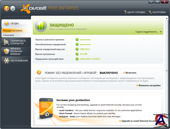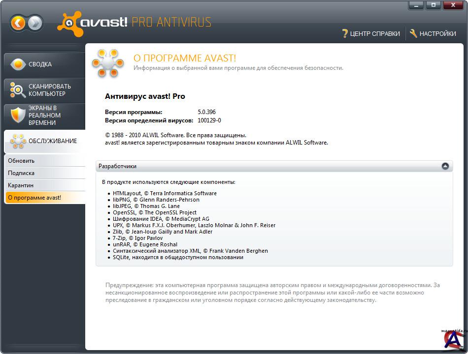 Версия: 5.0.314 (Beta 3) Free antivirus Активация: Регистрация в программе (бесплатно) Язык интерфейса: Русский Описание: Avast! вобрал в себя все высокопроизводительные технологии для обеспечения наилучшей защиты от компьютерных вирусов. Антивирусное Ядро Новая версия ядра антивируса avast! обеспечивает высокий уровень обнаружения вкупе с высокой эффективностью, что гарантирует 100%-ое обнаружение вирусов *In-the-Wild* и высокий уровень обнаружения троянов с минимальным числом ложных срабатываний. Механизм антивирусного ядра сертифицирован ICSA, постоянно принимает участие в тестах Virus Bulletin и получает награды VB100%. Простой пользовательский Интерфейс Резидентная защита Резидентная защита (защита в режиме реального времени) является одной из самых важных составляющих программы. Avast! предлагает к использованию мощный резидентный модуль, который способен обнаружить вирус прежде, чем он заразит ваш компьютер. avast! содержит резидентную защиту файловой системы и резидентный модуль для электронной почты. Резидентная защита файловой системы обеспечивает гарантию того, что ни один вирус не будет запущен. Предлагается широкий диапазон параметров настройки - например, можно определить, что файлы будут проверяться в течение копирования или что проверяться будут файлы только с заданным списком расширений. Резидентная защита почты состоит из двух независимых модулей: первый, стандартный сканер, проверяет SMTP/POP3/IMAP4 на уровне протоколов, что обеспечивает защиту любого из существующих почтовых клиентов. Второй - это специальный плагин для MS Outlook, работающий в прозрачном режиме и не требующий никаких специальных настроек. Эвристический анализ почтовых сообщений. Это очень полезно для защиты от новых, неизвестных вирусов и червей, которых нельзя обнаружить обычными средствами. Эвристический модуль тщательно изучает каждое почтовое сообщение и наблюдает за подозрительными признаками, которые могли бы выявить присутствие вируса. Когда число этих признаков превышает определяемый пользователем порог, сообщение считают опасным, и пользователь получает предупреждение. Блокировка скриптов Защита P2P и средств обмена мгновенными сообщениями Avast содержит модуль для защиты средств обмена мгновенными сообщениями и модуль для защиты программ P2P (peer-to-peer). Список поддерживаемых программ довольно широк, включает более 30 наименований. В то время как чаты сами по себе не несут серьезной угрозы в отношении проникновения вирусов, современные приложения для обмена сообщениями являются не только инструментом передачи информации: большинство из них поддерживает различные способы использования общего доступа к файлам, которые могут легко привести к вирусным заражениям, если их должным образом не отслеживать. Модуль защиты P2P не нуждается в дальнейшем описании – современные сети P2P (например, Kazaa) содержат тысячи потенциально зараженных файлов, поэтому вопрос защиты чрезвычайно важен. Web Shield Web Shield – уникальная составляющая avast!, которая позволяет просматривать и фильтровать весь трафик HTTP, поступающий с веб-сайтов интернета. В то время как число вирусов (и других вредоносных модулей, например рекламных блоков, шпионов и номеронабирателей), распространяющихся через Всемирную Паутину, неуклонно растет, также растет необходимость в эффективных контрмерах. Web Shield работа