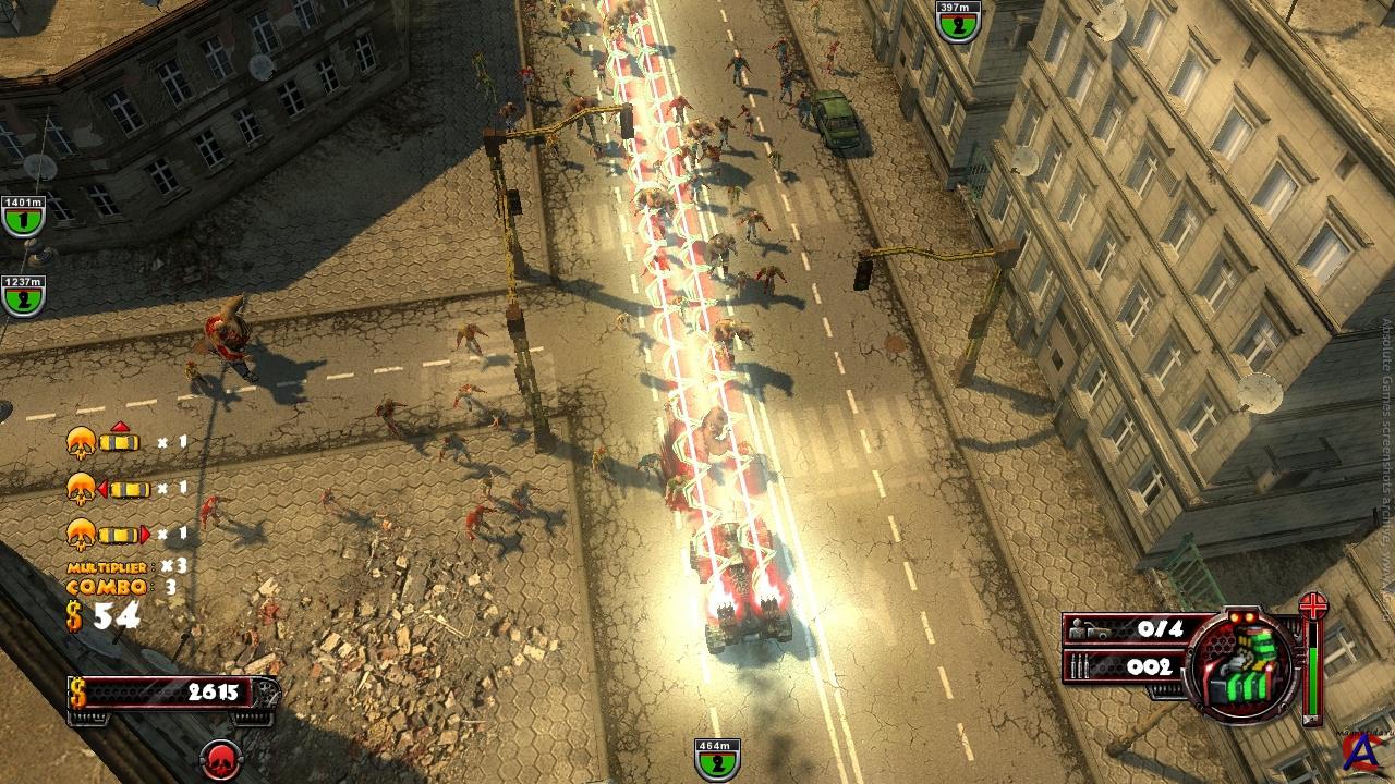 Пробивайтесь по улицам зараженного города для спасения выживших в катастрофе, которая превратила большинство жителей в безмозглых голодных монстров. Время – ваш враг, автомобиль – ваше единственное оружие, на котором вы будете перемещаться по улицам города, и давить все на своем пути. Ни один забор, ни одна телефонная будка, а уж тем более ни один зомби не останутся без повреждений. Если ужасных зомби станет очень много, вы сможете купить новую машину или поставить новое оружие и приспособление на старую. Больше денег можно заработать за выполнение побочных квестов. Zombie Driver является игрой без ограничений, то есть вы можете свободно бродить по темным улицам, переулкам и дворам в поисках скрытых приспособлений, которые усилят ваши возможности.