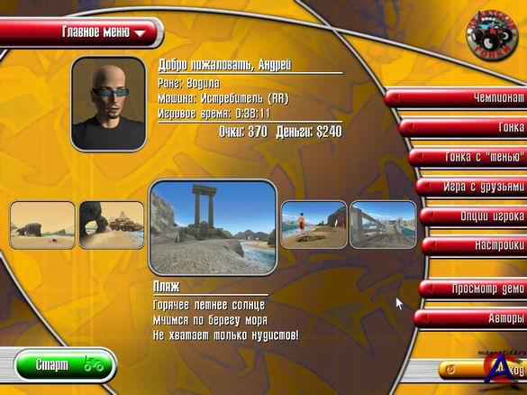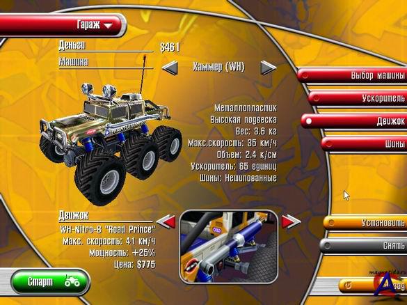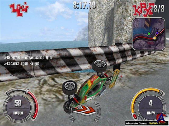 Платформа: PC Тип издания: Лицензия Язык интерфейса: Русский Таблетка: Не требуется Описание: Попробуйте взглянуть на привычный для вас мир со стороны игрушечной радиоуправляемой машинки, такой, которая есть у вас или в которую играют ваши дети. Многие предметы кажутся огромными, их не всегда просто объехать, люди в лучшем случае вас не замечают, а в худшем - могут и пинка дать. Птицы разлетаются, увидев вас, а собаки кажутся огромными лохматыми животными, справиться с которыми не так-то просто. А ведь еще надо задать жару противнику. Единственное, что может облегчить вам жизнь - это яркий красочный мир вокруг вас - синее море, горы, песчаный пляж, ослепляющее солнце... Теперь и вы сможете окунуться в этот мир и принять участие в гонках по пересеченной, конечно с точки зрения радиоуправляемых машинок, местности. Машинки там бороздят пески, подпрыгивают на кочках и ухабах, переворачиваются в воздухе и преодолевают водные препятствия. Системные требования: Система: Windows 98/ME/2000/XP; Процессор: Pentium III 600 МГц; Память: 64 Мб; Видео-карта: основанная на чипсетах NVidia GeForce2 GTS или ATI Radeon 8500 с установленной текстурной памятью не менее 16 Мб; Жесткий диск: 800 Мб свободного места для хранения игры, 200 Мб свободного места для виртуальной памяти Windows; DirectX 8.1 (для обновления библиотек Microsoft DirectX на системном жестком диске должно быть свободно как минимум 80 мегабайт.); Разрешение экрана не менее 800-600, 256 цветов;
