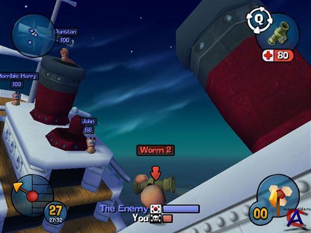 О файле: Активация|рег код: не нужен Формат файла: ISO (образ UltraISO) Платформа: PC Минимальные Системные требования: Windows 98/XP, PIII-700, 128 Mb RAM, 32 Mb 3D video (GF2 или лучше), SB Об Игре: Товарищи!Черви - это не только ценная слизь, но и трехмерная игра, которая напрочь сносит башню всем, от мала до велика! Если вы не боитесь провести ближайший месяц за компьютером, не есть, не пить, не спать, то можете смело покупать этот шедевр. Почему? Потому что это война, великолепный черный юмор, и потому что Черви, от которых мы не ждали больше ничего, кроме бесполезной слизи... А тут - такой фурор! Эти розовые ребята крушат друг другу чайники на фоне великолепных ландшафтов. Мало того, для лучшего крушения они используют практически все, что попадется им под щупальца: приемы карате, базуки и ружья, динамит и веревки, бананы и овец, дрели и отбойные молотки. Причем ребята не только хорошо дерутся, но и отлично прячутся. Хорошо припрятанный червь, например, вашими усилиями закопанный глубоко под землю и тихо матерящийся в рацию - настоящий Рембо песчаных карьеров! Не бойтесь никого и ничего! Смело ведите свою кольчатую команду в бой и воюйте за мир во всем мире!!! Бравые вояки получили новую степень свободы! Трехмерные сражения до зубов вооруженных червяков-коммандос, веселых, злобных и готовых на все ради победы стали еще более насыщенными и красочными. Трехмерный игровой мир позволяет использовать массу тактических приемов, открывает простор для новых видов вооружений и всевозможных приспособлений, которыми червяки, как ваши, так и вражеские, не преминут воспользоваться. Масса режимов для одиночной или коллективной игры не дадут заскучать ни одинокому вояке, ни целой армии друзей, сидящих у одного компьютера или ведущих боевые действия по сети. Особенности игры: - Полноценная, сюжетно-ориентированная кампания для одиночной игры. - Десятки видов оружия (в том числе массового поражения), экзотическое обмундирование и множество полезных приспособлений, которыми червяки могут пользоваться во время боя. - Множество игровых карт (деформируемых в процессе боевых действий) обеспечат практически бесконечное разнообразие игрового процесса. Карты также можно генерировать по случайному принципу. - Несколько удобных режимов обзора: панорама, обзор от первого или от третьего лица. - Коллективная игра: по локальной сети, через Интернет или на одном компьютере, — в последнем случае сражаться могут до четырех человек одновременно.