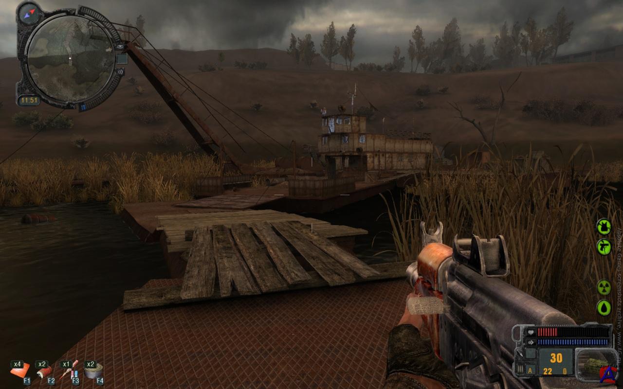 Начальство Дегтярева с прямо-таки преступным расточительством разбрасывается кадрами. Вот даже товарищу майору выдали лишь паршивенький автомат, который слабого слепого пса берет с пол-обоймы, банку консервов и карманный компьютер. Высадили подчиненного в чистом поле – и делай, что хочешь. Слава Богу, есть добрые люди – встречный сталкер расскажет нам, что от дождя или выброса можно укрыться на старом сухогрузе «Скадовск». Значит, туда мы и держим путь.