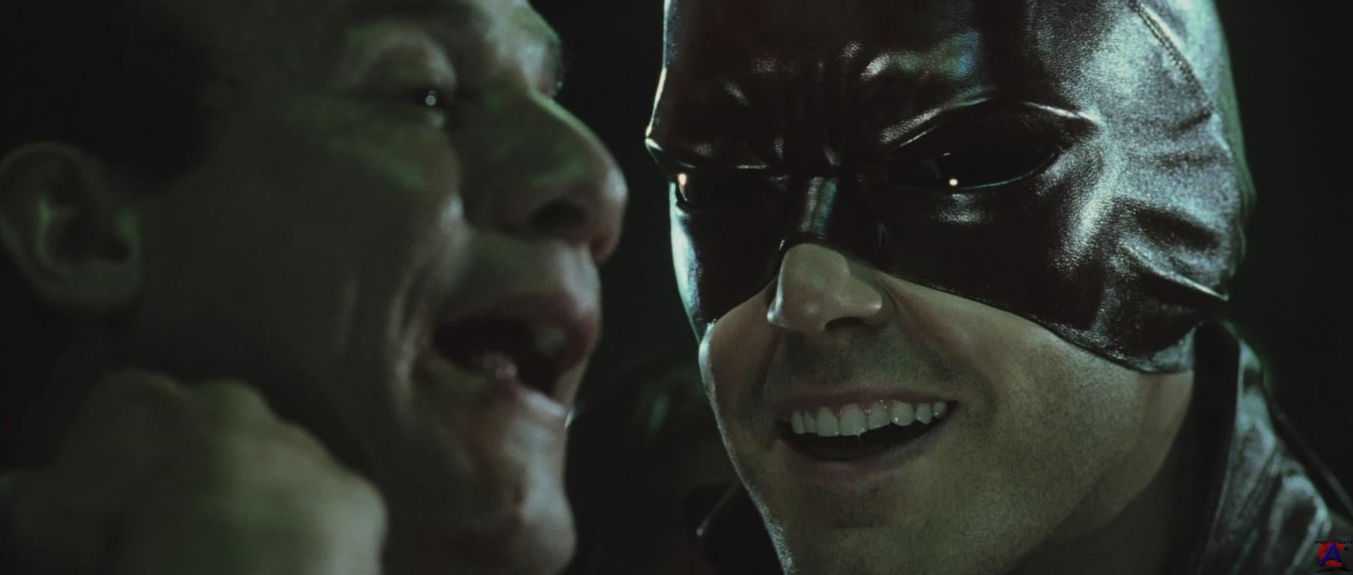 Качество: HD 1080р (реж.версия) Видео кодек: MPEG4 Video (H264) 1920x816 23.98fps Аудио кодек: DTS 48000Hz 6ch Перевод: закадровый (два голоса) Качество: HD 720р Видео кодек: MPEG4 Video (H264) 1280x544 23.98fps Аудио кодек: Dolby AC3 48000Hz 6ch Перевод: дубляж Жанр: боевик, триллер, фэнтези, криминал Премьера в мире: 9 февраля 2003 Премьера в РФ: 12 марта 2003, «Гемини Киномир» Рейтинг mpaa: PG-13 - Детям до 13 лет просмотр не желателен Продолжительность: 103 мин. Информация о фильме: Он живёт в мире вечной ночи, но эта темнота заполнена звуками и запахами, её можно попробовать на вкус и потрогать руками. Адвокат Мэтт Мердок слеп, но остальные органы чувств у него работают, как у супермэна.Днём Мердок защищает униженных и оскорблённых в зале суда, а ночью превращается в сорвиголову в маске, восстанавливая справедливость на улицах города самыми радикальными методами.