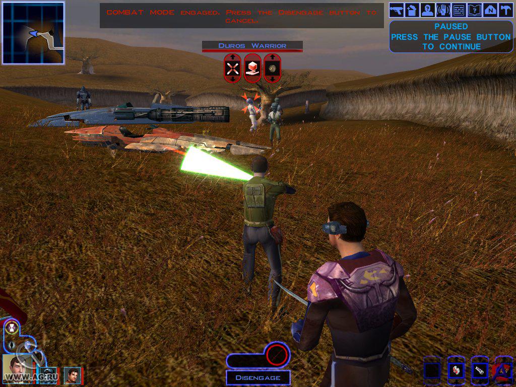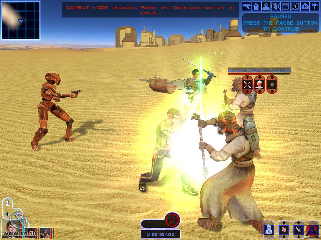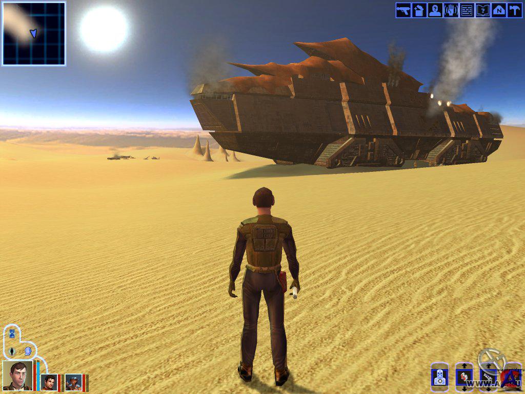 Описание: KotOR — первая компьютерная ролевая игра, действие которой происходит в авторском мире «Звёздных войн». Бои проходят в реальном времени, но их можно в любой момент приостановить. Главный герой балансирует между добром и злом, и от каждого его поступка зависит его принадлежность к Светлой либо Тёмной сторонам Силы, а в конечном счёте и концовка игры.