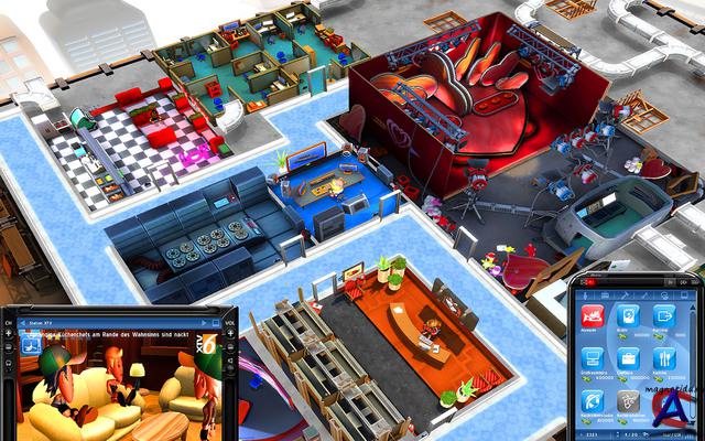 Тип издания: Лицензия Язык интерфейса: GER Язык озвучки: GER Таблетка (Crack): Не требуется. Системные требования: Операционная система Windows 7/XP/Vista; Процессор Intel Pentium IV с тактовой частотой 2,0 ГГц или аналогичный; 1 Гб (XP)/2 Гб (Vista) оперативной памяти; 2 Гб свободного места на жестком диске; Видеокарта с 128 Мб видеопамяти, совместимая с DirectX 9.0c; Звуковая карта; Клавиатура, мышь. Описание: M.U.D. TV, симулятор директора телестудии, делается в Германии и потому полон шуток на тему отупляющего телевидения и соответствующих приколов. Если за производственно-политической драмой сюда явно ходить не стоит, то за интересным экономическим симулятором — вполне. M.U.D. TV, похоже, станет первой приличной игрой в специфическом жанре «тайкун про телеканал» — последний раз на эту тему достойно выступала почти одноименная Mad TV 1991 года выпуска. Итак, у вас есть эфир, который надо чем-то заполнять: от немецкого аналога «Дома-2» до немецкого же аналога «Вестей». В распоряжении директора есть некоторые производственные мощности для создания телепрограмм (в этом месте игра несколько напоминает The Movies Питера Молиньё). Наконец, для того, чтобы все это функционировало как часы, необходимо привлекать рекламодателей и зарабатывать деньги. Причем величина рекламного контракта зависит от числа потенциальных зрителей телепередачи — грубо говоря, срубить миллионы с BMW и поставить их ролик в какой-нибудь «Сельский час» не получится.