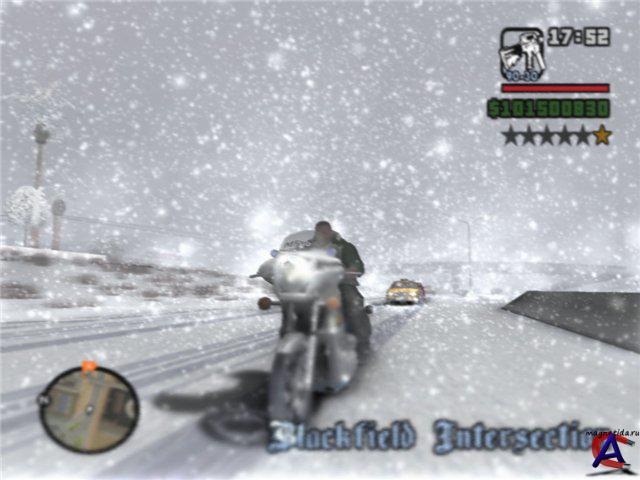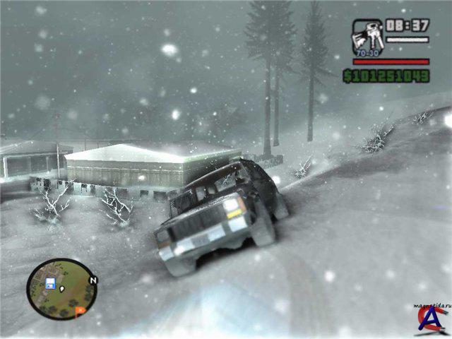 Платформа: PC Язык интерфейса: СЩА Язык озвучки: США Тип издания: Пиратка NO DVD: Не требуется Минимальные Системные Требования Процессор: 1GHz Intel Pentium III или AMD Athlon; Память: 256 Мб RAM; Привод: 8x DVD-ROM привод Видеокарта: 64 Мб, совместимая с DirectX 9 (GeForce 3 или лучше); Звук: Звуковая карта, совместимая с DirectX 9; Остальное: Клавиатура, мышь, HDD 5 ГБ . Рекомендуемые Системные Требования Процессор: Intel Pentium 4 или AMD Athlon XP (или лучше); Память: 384(+) Мб RAM; Привод: 16x DVD-ROM привод, Видеокарта: 128(+) Мб, совместимая с DirectX 9 (GeForce 4 или лучше); Звук: Звуковая карта 5.1, совместимая с DirectX 9; Прочее: USB-геймпад с двумя аналоговыми джойстиками; Остальное: Клавиатура, мышь, HDD 5 ГБ . Описание GTA: San Andreas - новая игра во вселенной Grand Theft Auto, претендующая на установление новых стандартов в жанре. Действие San Andreas происходит в начале 90-ых годов прошлого века в огромном вымышленном штате Сан-Андреас, расположенном примерно там же, где в настоящей Америке находятся Калифорния и Невада. На его территории размещены три крупных города: Лос-Сантос (Лос-Анджелес), Сан-Фиерро (Сан-Франциско) и Лас-Вентурас (Лас-Вегас). Игра носит поистине революционный характер, появилось множество нововведений, а также серьезно улучшены традиционные для GTA игровые аспекты. Особенности данной сборки - Оригинал не требуется! - Автоматическая установка - Заменено более 1700 текстур - 100% карты в снегу - Снегопад (нажмите Ctrl + [+ Num]) - Wetahercontrol (нажмите 1 для переключения погоды) - 152 новых автомобилей - 30 новых видов одежды - Сосульки - Обработка Реалистичнее - Фото-реалистичные текстуры снега - Следы во время торможения - Ксеноновые и светодиодные огни - Снег на шинах - Новые высокие текстуры интерьеров - Дополнительные растительность - Новые диски и шины - Новое Оружие - Новые миссии - Автомобильный Автосалон в "Отто Carsaloon" - 13 eastereggs - Начать новую игру не требуется * - И многое-многое другое! - Недоработки мода тоже есть(вода не замерзает,люди одеты по легкому) - Эффекты заменены Прочитать обязательно 1.В папке с игрой есть программа для улучшения графики включение/выключение Shift+F12 . 2.У кого не запускается игра , нажмите SAgfxHack.exe и запустите через неё игру . 3.Снегопад (у кого не запускается) включить NumPad потом зажать CTRL И ПЛЮС НА NUMPAD"E ! 1 раз - слабый уровень снега , 2 - повыше , 3 - ещё выше , 4 - максимально, ещё раз - отключить!