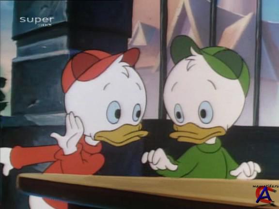 Качество: DVD-RIP. Video: 640x480 (1.33:1), 25 fps, XviD MPEG-4 ~1428 kbps avg, 0.19 bit/pixel Audio: 48 kHz, MPEG Layer 3, 1 ch, ~60.83 kbps avg Жанр: комедия, приключения, семейный, мультфильм Перевод: Профессиональный, дублированный, русский. Премьера в мире: 16 апреля 1988 Продолжительность: ~20 мин. - 1 серия. Информация о фильме: Скрудж Макдак и его племянники Билли, Вилли и Дилли попадают в захватывающие приключения, из которых всегда с честью выбираются. Второй сезон - 1. "Marking Time - Засекаем время" Чтобы доказать свои права на владение ценным островом с алмазами, Скрудж отправляется на машине времени обратно в прошлое, но случайно попадает в доисторическое прошлое – к динозаврам и пещерным уткам... - 2. "The Duck Who Would Be King - Селезень, который мог стать королём" Вместо того, чтобы вернуться обратно в Даксбург, утки вместе с пещерным утёнком Бабби попадают в очередное приключение в прошлом – на этот раз им надо свергнуть одного жестокого тирана с власти. - 3. "Bubba Trubba - Бабби в опасности" Скрудж случайно привёз Бабби в своё время и вскоре убедился, что тот приносит одни неприятности. А как иначе можно назвать то, что Бабби впустил в банк Скруджа братьев Гавс? - 4. "Ducks on the Lam - Утиный переполох" Скруджу надо вернуть своё состояние, а так же вернуть Бабби в его время, иначе вся история может измениться... - 5. "Ali Bubba"s Cave - Пещера Али-Баббы" Скрудж должен ещё разобраться с Гломгольдом, ведь дело с алмазами ещё не закончено. - 6. "Attack of the 50-foot Webby - Гигантомания" По воле случая Понка превращается в огромного великана. И злобный хозяин цирка теперь в глубоких раздумьях – кого же ему лучше похитить для своего шоу – огромную гориллу из джунглей или столь же огромную Поночку? - 7. "Ducky Mountain High - Утки высокого полёта" Скруджу предстоит тяжёлая схватка – ему приходится состязаться с Гломгольдом за право вырубки леса с золотыми деревьями... Но Гломгольд решает не терять время и обращается к местным родственникам братьев Гавс. - 8. "Yuppy Ducks - Юные воротилы бизнеса" Скрудж заболел – поэтому распоряжаться всем его бизнесом решают Билли, Вилли и Дилли. И, что самое удивительное, им удаётся – они сумели сделать парочку выгодных сделок. Но они и не догадываются, что одно неправильное решение – и всё состояние Скруджа может исчезнуть... - 9. "The Bride Wore Stripes - Бесприданница" Мамаша Гавс наконец-то придумала идеальный способ завладеть деньгами Скруджа – стать его женой. Кажется, что это невозможно, но для мамаши Гавс нет никаких преград, и вскоре она поселяется в поместье Скруджа. Как же выгнать её оттуда? - 10. "Bubbeo and Juliet - Бабелло и Джульетта" Пещерная утка Бабби влюбляется в нормальную современную девочку. Взаимны ли будут его чувства, и как к этому отнесутся окружающие?.. - 11. "The Good Muddahs - Три добрых мамочки" Бедная Поночка – её никто не замечает, с ней никто не играет и не общается – все слишком заняты, чтобы уделить внимание этой малютке. Поэтому ей ничего не остаётся, как пойти жить к трём сёстрам-мошенницам, которые будут ещё похлеще самих братьев Гавс... - 12. "Bubba"s Big Brainstorm - Великое прозрение Бабби" Винт Разболтайло изобрёл специальный шлем для пещерной утки Бабби – с его помощью он станет во много раз умнее и образованнее. Но будет ли это тот самый Бабби или же это будет совсем новый, занудный утёнок? - 13. "Beaglemania - Гавсомания" Братья Гавс выиграли рок-н-рол конкурс, и теперь, о ужас, Скруджу, как главному продюсеру Даксбурга, который работает с новыми талантами, п