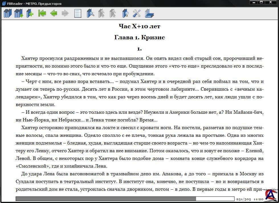 Описание: Предыстория событий, описанных в повести Дмитрия Глуховского «Метро 2033». Написана поклонниками данного произведения Дмитрия. Спорные вопросы развития сюжета согласовывались с Дмитрием. Помимо прочего, сие произведение было любезно упомянуто уважаемым Д.Г. в его интервью журнала «Компьютерра» (www.m-e-t-r-o.ru/interview.pdf).