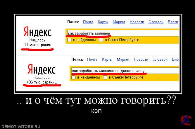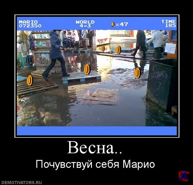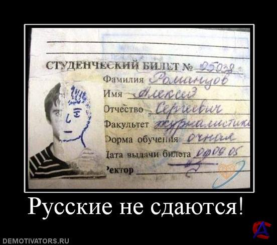 Демотиваторы (демотивационные постеры) — изображение, состоящее из картинки в рамке и комментирующей её надписи-слогана, составленное по определённому формату. Вскоре после появления демотиваторы стали интернет-мемом.Содержание История и распространение Изначально демотивационные постеры появились как пародия на мотивационные постеры или мотиваторы — вид наглядной агитации, предназначенный создать подходящее настроение в школах, университетах и на рабочих местах. Мотивационные постеры очень часто бывали скучны, поэтому широко распространилась практика их пародирования, обычно заключавшаяся в составлении постеров по такому же стандарту, но (предположительно) вызывающих вместо положительных эмоций отчаяние, уныние и грусть. Подобные пародии и получили название демотивационных постеров. Впоследствии тематика демотиваторов расширилась и до просто комической. Большой вклад в развитие демотиваторов внесла американская компания Despair, Inc. (русск. Отчаяние), продающая через Интернет демотивационные постеры и впоследствии предложившая посетителям своего веб-сайта возможность создания собственных картинок подобного плана. Продолжая традицию имиджборда 4chan, демотивационные постеры часто появлялись и на имиджбордах отечественных. Многие надписи на демотиваторах впоследствии стали мемами. Формат постеров В обоих вариантах постер строится по достаточно жёсткому формату. Практически всегда он представляет собой плакат чёрного цвета, на котором размещены следующие элементы: -Изображение в рамке, иллюстрирующее постер. -Лозунг, набранный крупным шрифтом с засечками. -Набранное более мелким шрифтом пояснение или цитата, объясняющие идею подробнее (эта деталь иногда отсутствует, что, однако, неправильно). Добавил новые демотиваторы (выюирал самые смешные)