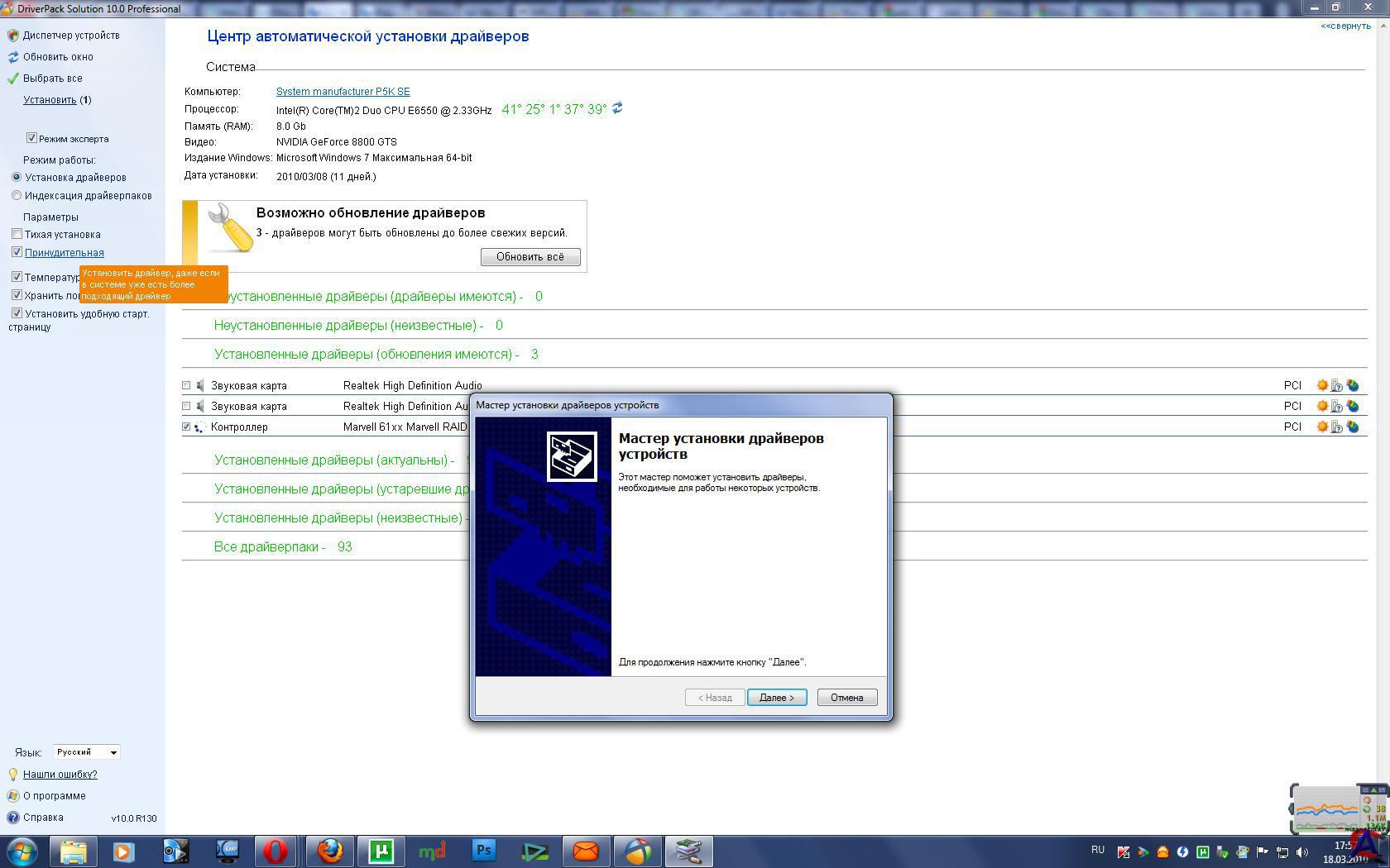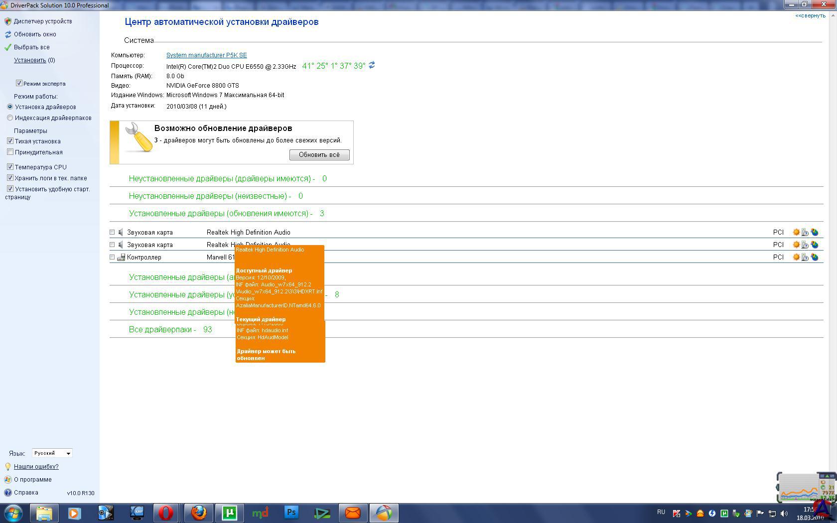 Описание: DriverPack Solution 10 - это новейшая версия самой популярной программы для автоматической установки драйверов. Эта версия содержит огромное количество новых функций и оптимизирована под все платформы (x86-x64). А благодаря свежим базам программа установит драйвера на любой компьютер! DriverPack Solution - это самая популярная программа для автоматической установки драйверов. Существенно облегчает процесс переустановки Windows практически на любом компьютере. Теперь Вы будете избавлены от проблем поиска и установки драйверов, сводя их к нескольким кликам! Преимущества DriverPack Solution new! * new! Поддержка 64-битных Windows * new! Возможность обновления уже установленных драйверов * new! Определение температуры процессора * new! Автоматическое определение языка пользователя (всего 11 языков) * new! Улучшен интерфейс программы * new! Добавлены всплывающие подсказки и инфо-блок * new! Добавлены горячие клавиши * new! Значительно увеличилась скорость обработки данных * new! Новая система создания отчётов об ошибках * new! ...и многое другое... Лицензия DriverPack Solution является открытым программным обеспечением и распространяется по лицензии GNU GPL. Авторские права принадлежат Артуру Кузякову.