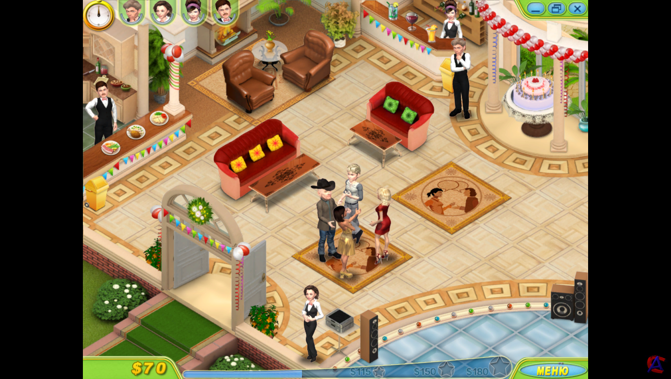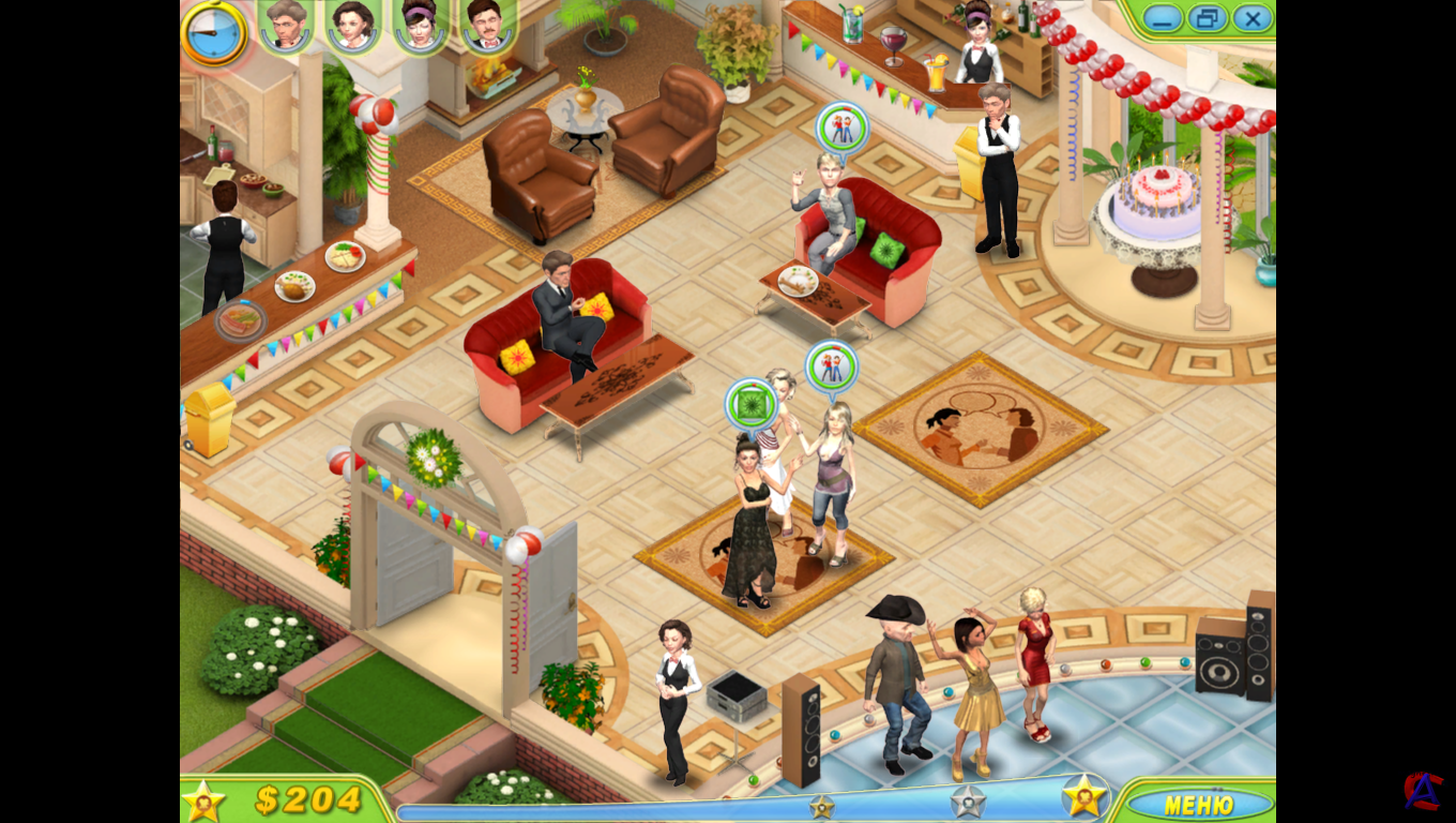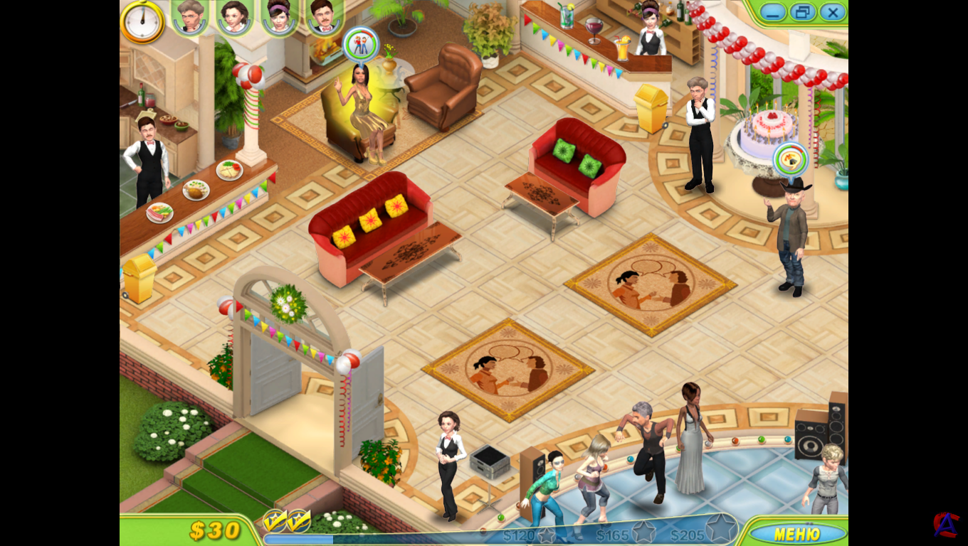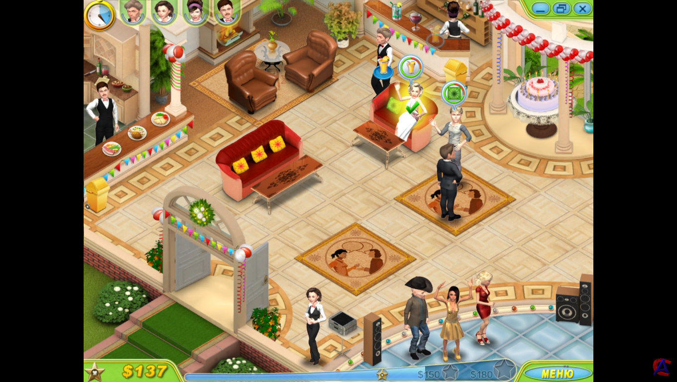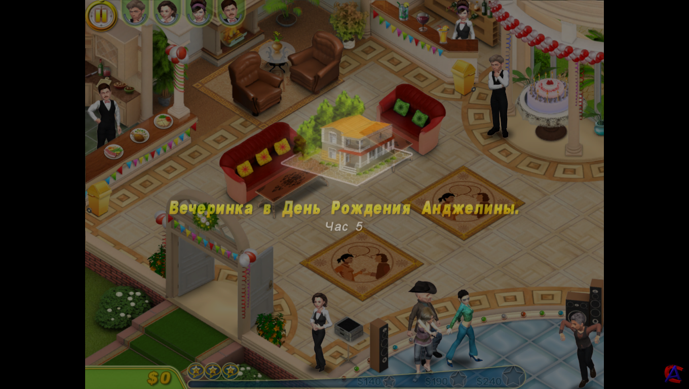 Название: Королева вечеринок Жанр: Симулятор Разработчик: Merscom Год: 2010 Платформа: PC Язык интерфейса: русский. Полная версия игры. Системные требования: Операционная система: Windows XP/Vista; Процессор: Pentium III 1 ГГц; Оперативная память: 128 Мб; 3D-видеокарта: 128 Мб; Звуковая карта: DirectX-совместимая; DirectX: версии 7.0 или выше; Свободного места на жестком диске: 246 Мб Описание: В этой захватывающей игре тебе предстоит заняться организацией элитных вечеринок для самых ярких звезд шоу-бизнеса. Не получилось с первой попытки попасть в сверкающий мир Голливуда? Не унывай – удача любит настойчивых! Собери команду профессионалов и начни работать. Вовремя выполняй пожелания звездных гостей, приноси им заказанную еду и напитки, провожай на танцпол, следи, чтобы им не докучали папарацци, и, конечно же, не забывай непринужденно беседовать с ними о моде и бизнесе. Теперь ты не пропустишь ни одного званого вечера! Если ты сумеешь показать себя в лучшем свете, знаменитости запомнят тебя. И в один прекрасный день вечеринку устроят именно в твою честь! Особенности: # гости вечеринки – голливудские звезды # увлекательные мини-игры: поиск предметов, головоломки, пазлы # яркая, живая графика # возможность повышать уровни своего мастерства