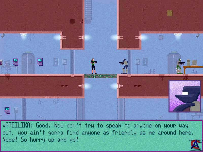 Платформенный шутер с элементами развития персонажа, большими уровнями с большим количеством путей, мощными боссами и кучей секретов. Iji - сверхчеловек со сверхспсособностями. Она может управлять инопланетными технологиями, взламывать их устройства и использовать их оружие. В игре отличный сюжет, приятная графика и хороший звук. Сама игра хорошо продуманна и довольно длинная. Поетому сдесь есть возможность сохранения и загрузки игрового процесса. Однозначно Must have !