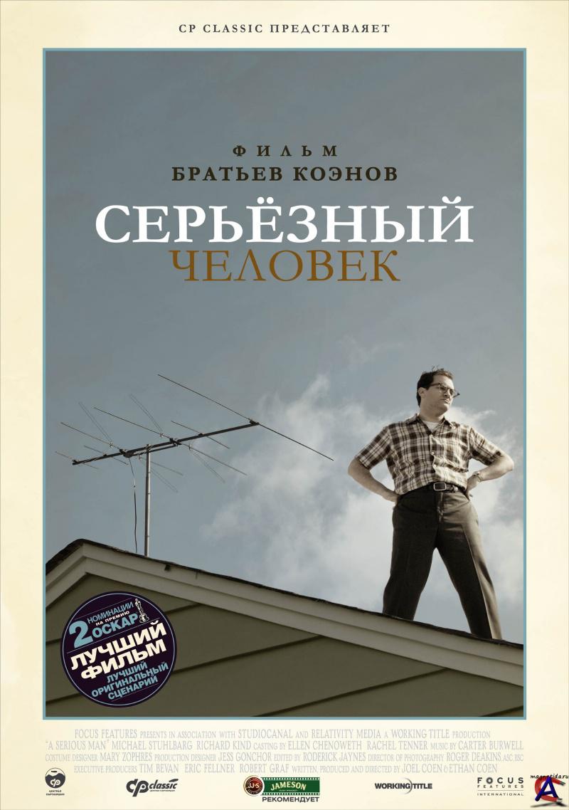Качество: HDTV(1280 X 696) Видео кодек: AVC Bit rate : 4 196 Kbps , 16/9 , 24 bits , 4:2:0 Аудио кодек: Audio #1 - AC-3 Bit rate : 448 Kbps 6 channels L C R, Surround: L R, LFE 48.0 KHz Language : Russian . Audio #2 - AC-3 Bit rate : 448 Kbps 6 channels L C R, Surround: L R, LFE 48.0 KHz Language : English . Английский Текст 1 Формата # : UTF-8 Codec ID : S_TEXT/UTF8 Русский Текст 2 Формата # : UTF-8 Codec ID : S_TEXT/UTF8 Продолжительность: 1ч.45мин. Перевод: Профессиональный . Формат: Matroska Информация о фильме: Главным героем фильма «Серьёзный человек» является Ларри Гопник, профессор еврейского колледжа на Среднем Западе в 1976 году. Ларри начинает задаваться вопросом о ценности жизни, когда он обнаруживает, что его жена хочет развестись. У него также проблемы с его детьми, ворующими деньги из его кошелька и его братом-бездельником, который поселился у него, потому что у него нет ни денег, ни зрелости для того, чтобы жить своей собственной жизнью. Ко всему этому добавляются получаемые им враждебные анонимные записки, которые угрожают его работе в школе, студент-выпускник, который хочет любыми способами получить необходимую ему оценку и привлекательная соседка, которая терзает Ларри, принимая обнажённой солнечные ванны. И немного удивляет, почему Ларри стремится решать свои экзистенциальные проблемы, обратившись к священникам, которые, как он надеется, помогут ему стать более строгим и любящим.