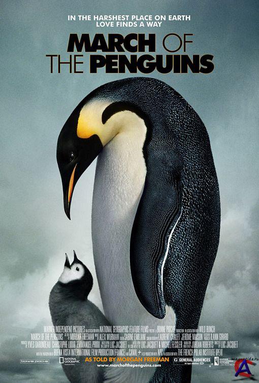 Качество: HD Видео кодек: MPEG4 Video (H264) 1280x692 25.00fps Аудио кодек: Dolby AC3 48000Hz 6ch Жанр: семейный, документальный Перевод: закадровый Премьера в мире: 21 января 2005 Премьера в РФ: 19 мая 2005, «Централ Партнершип» Рейтинг mpaa: G - Нет возрастных ограничений Продолжительность: 80 мин. Информация о фильме: Каждую зиму, вот уже в течение многих тысячелетий, в ледяных пустынях Антарктики самой негостеприимной части Земли происходит поистине удивительное путешествие.Тысячи императорских пингвинов покидают надежную глубину океана, выходят на холодную землю и начинают свое долгое путешествие вглубь настолько сурового и морозного континента, что там нет никакой жизни.Но именно туда идут цепочкой, друг за другом императорские пингвины. Несмотря на слепящие снежные бури, они решительно и упрямо идут туда, где должны дать жизнь потомству и обеспечить выживание вида.