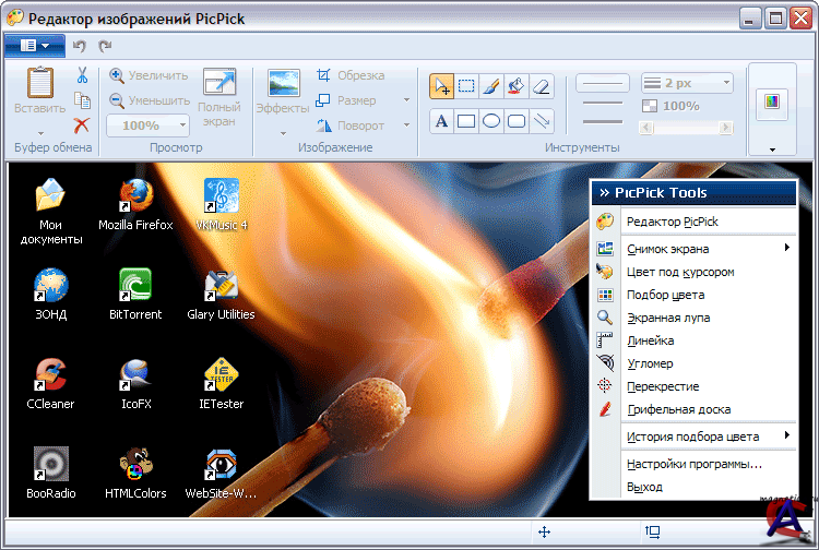 Версия:2.2.7 Язык интерфейса:Русский Описание: PicPick - Это бесплатный и очень удобный захватчик экрана компьютера. PicPick обладает простым и удобным интерфейсом, имеет собственный графический редактор, в котором можно выполнить все стандартные операции по корректировке скриншота, не прибегая к помощи сторонних редакторов. Среди особых возможностей стоит выделить возможность захвата целого рабочего экрана (в том числе и на мультимониторных системах), захват только активного окна, отдельной области, целых веб-страниц (с автоматической прокруткой) или же областей с произвольными границами.