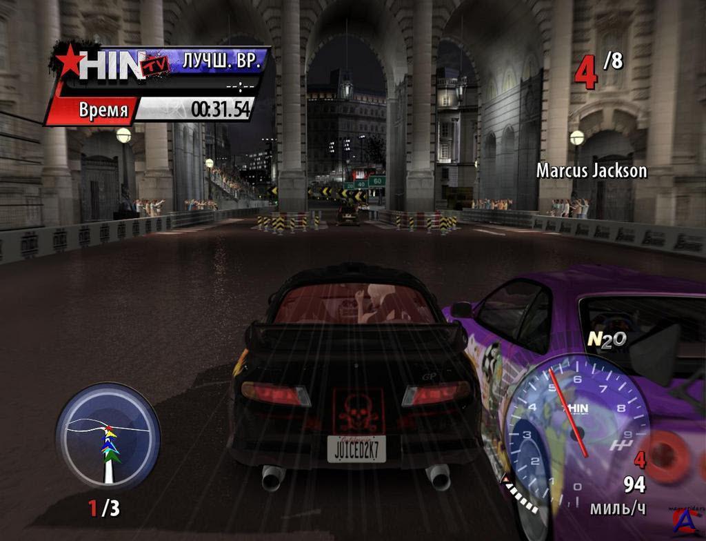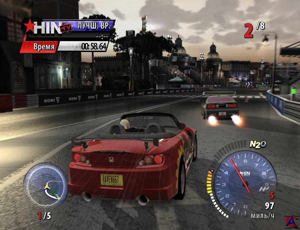 Juiced 2: Hot Import Nights [Repack] Год выпуска: 2007 Жанр: Racing Разработчик: Juice Games Издательство: THQ, Бука Платформа: PC Язык интерфейса: только русский Язык озвучки: только русский Тип издания: Repack Таблэтка, Crack, no dvd: Не требуется. Минимальные cистемные требования: 3 ГГц 1 Гб ОЗУ 256 Мб видео 8 Гб HDD Рекомендуемые требования: Core 2 Duo 2 Гб ОЗУ 512 Мб видео 8 Гб HDD Описание: Кинофильм «Форсаж» не только представил зрителю мир подпольных автомобильных соревнований, но и породил новое направление аркадных гоночных игр. Первой попыткой перенести стиль «стритрейсинг» на мониторы стала нынче легендарная Need for Speed Underground. В этой более чем достойной игре нашлось место тем притягательным чертам уличных гонок, ради которых тысячи молодых людей по всему миру зачитывают до дыр автомобильные журналы и спускают все деньги, пытаясь сделать своего «железного коня» хоть немного похожим на скоростных монстров. Если не по ходовым характеристикам, то хотя бы внешне. NFS:U пришлась по вкусу геймерам, не стало дело и за последователями — игра Juiced, вышедшая в 2005 году, предложила свой, немного другой взгляд на уличные гонки. Без толстого слоя глянца и ослепительного света ксенона, без огромных спойлеров и фотомоделей в откровенных нарядах. Зато с большим упором непосредственно на вождение — более вменяемая физическая модель, командные заезды и множество вариантов соревнований помогли Juiced найти свою, пусть и не очень многочисленную аудиторию. Сиквел Juiced 2: Hot Import Nights можно охарактеризовать как «работу над ошибками», или скорее «наведение лоска». Подробнее об игре: Много путей — одна победа Наводить лоск начали с «одежки». Неказистые экраны настроек из первой части ушли в небытие, проводить время в меню теперь куда приятнее: красивые фоны, чудо-машины в самых манящих ракурсах и грохочущий рэп высшего класса, куда более уместный для таких случаев, нежели небрежно подобранные, порой безликие композиции в последних частях NFS. Полностью изменилась и сама система соревнований. Нет больше календаря заездов и организуемых игроком мероприятий, вместо них появился набор лиг и событий. Для перехода из одной лиги в другую надо выполнить определенный процент заданий, после чего пройти миссию повышения. Добиваться поставленных целей предстоит на разных трассах, причем на одной часто приходится решать сразу несколько задач. Например, напугать определенного соперника (ехать за ним бампер в бампер определенное время), набрать необходимую скорость, занять определенное место в чемпионате, заработать нужное количество очков при прохождении управляемого заноса. Условия победы в самой гонке тоже могут быть разными — от стандартного «прийти первым» до изощренного «игра на вылет», когда при малейшем касании бортика засчитывается поражение. При этом, благодаря продуманному распределению заданий по гонкам, всегда есть возможность пропустить особенно сложные, заведомо проигрышные и опасные заезды Кто купил билетов пачку, тому тачку на прокачку По мере прохождения игроку предстоит зарабатывать деньги. Сделать это можно, к примеру, выиграв пари у гонщиков-конкурентов. Ну а на что настоящий стритрейсер тратит деньги — всем известно: на модернизацию своей машины. Тюнинг представлен в виде постепенного улучшения определенной системы автомобиля, при этом каждый следующий уровень «апгрейда» открывает