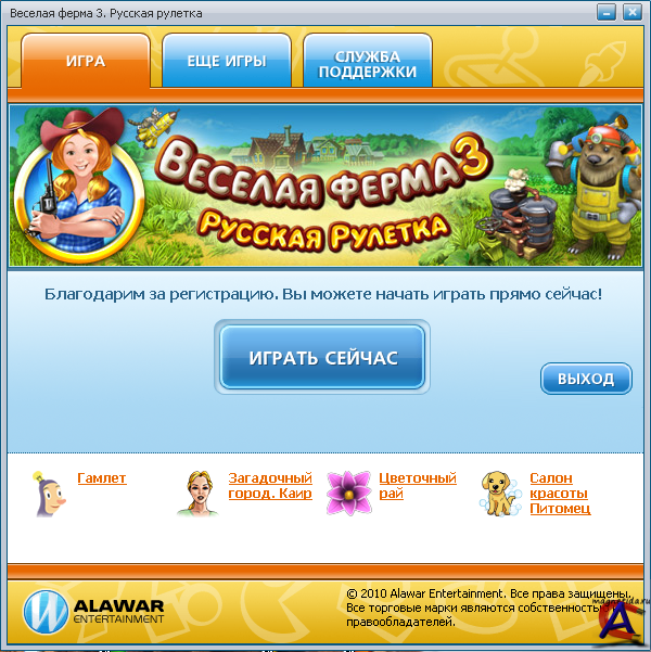 Системные требования для игры Веселая ферма 3. Русская рулетка: PII-600 / 64M RAM / 16M Video 3D, Windows XP, DirectX 9.0 Увлекательная игра в стиле "бизнес", новое продолжение Веселой фермы 3. Скарлетт уже купила ранчо для своей бабушки и помогла Деду Морозу построить завод по производству новогодних подарков. Следующая остановка — Россия: качай нефть, стань олигархом! Скарлетт отправляется в гости к своей русской подруге. Таня жалуется, что ее жених, отважный космонавт Степа, совсем исхудал. Ответственные за снабжение станции чиновники поставляют на орбиту некачественные продукты. Чтобы исправить положение, космонавтам срочно требуется ваша помощь! Вам потребуется организовать работу фермы, наладить бесперебойную добычу нефти и построить нанофабрику, на которой делаются запчасти для ракет. Если Скарлетт справится со всеми задачами, то она сможет выиграть тендер на поставку продуктов для отважных покорителей космоса. А там и до Марса недалеко. Ключ на старт!