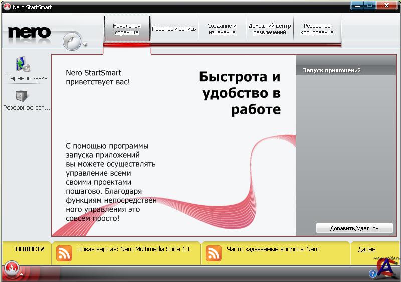 Год выхода: 2009 OC: Windows® XP/Vista/7 Язык интерфейса: Русский Лекарство: Есть Nero - громадный комплекс программ для создания собственных дисков, с отличной поддержкой аудио, приличной программой записи дисков и вполне сносными инструментами для резервного копирования информации. Если вы имеете достаточную подготовку, то работа с Nero не вызовет у вас ни затруднений, ни разочарования. Программа поддерживает многосеансовый и смешанный режимы записи; HFS, ISO/HFS, UDF, PSX, OFAS (оптимальная скорость доступа к файлам), track-at-once (TAO) и disc-at-once (DAO) и многое другое. Nero 9 - пакет инструментов при помощи которых вы сможете без малейших усилий выполнять любые операции, связанные с записью дисков CD и DVD. Если вам нужно записать на DVD видеофрагменты, фотографии, данные, аудиоматериалы или создать копию диска, просто откиньтесь на спинку кресла и понаблюдайте, как Nero 9 выполнит всю работу самостоятельно. Но это лишь часть почти неограниченных возможностей пакета, Nero 9 также предоставляет инструменты для редактирования аудиозаписей, микширования многочисленных звуковых дорожек с профессиональным качеством, просмотра фильмов на дисках VCD, SVCD и DVD, воспроизведения музыки, дизайна обложек, оптимизации производительности записывающих устройств и многого другого! Ключевые аспекты Nero 9: * функции быстрого и легкого считывания, записи, автоматического резервного копирования и простого копирования * резервное копирование файлов на CD, DVD и Blu-ray диски* * создавайте профессионально выглядящие DVD фильмы с интегрированными объемными меню * копируйте, записывайте, совместно используйте, передавайте и создавайте музыкальные миксы, как ди-джей * конвертируйте музыку, фотографии и DVD, чтобы использовать на вашем iPod® и других мобильных устройствах * быстрая загрузка фото и видео на My Nero, YouTube™, и MySpace * смотрите, записывайте, ставьте на паузу и настраивайте свое живое ТВ * воспроизводите формат AVCHD и другие форматы HD УСТАНОВКА!!!: Если до этого у вас были установлены какие-либо продукты линейки Nero 9, то чистим систему от них по следующему алгоритму (чистка системы): 1. завершаем все запущенные, приложения Nero; в "Службах" (чтобы долго не искать: через Пуск - Выполнить или Пуск - Все программы - Стандартные - командная строка запускаем на исполнение services.msc) останавливаете Nero BackItUp Scheduler 4.0 (если установлен Nero 9 /BackItUp 4) и NeroMediaHomeService.4 (если установлен MediaHome 4) 2. запускаем keymaker и нажимаем Remove all serials – Reset white list (если keymaker вылетает с ошибкой, тогда перезапустите его) 3. теперь при помощи последней версии General CleanTool (в раздаче присутствует) удаляем ВСЁ и перезагружаемся 6. после перезагрузки запускаем General CleanTool повторно, если находит что-то ещё, то повторно удаляем ВСЁ, запускаем keymaker, нажимаем Remove all serials – Reset white list и перезагружаемся (если CleanTool ничего не нашёл - перезагружаться не нужно) 7. в директориях Program Files и Documents and Settings (или Users для Windows Vista/7) удаляем папки, содержащие в названии Nero (воспользуйтесь поиском); после чего (не обязательно) можете дополнительно сторонними программами удалить временные файлы 1. Устанавливайте все необходимые продукты (в том числе, если необходимо, и BackItUp&Burn*, MediaHome 4.0, Move it и др.) с ТРИАЛ (Trial - уже введенном по умолчанию) ключем. Не запускаем ничего после установки. 2. Далее существует два пути, зависящие от того, что вы установили: 1) Первый и самый простой. Используется в случае если вы устан